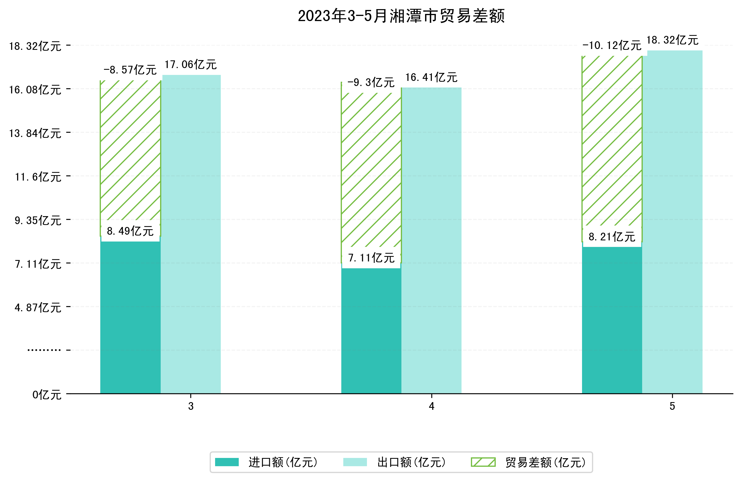 2023年5月湘潭市进出口总额及进出口差额统计分析