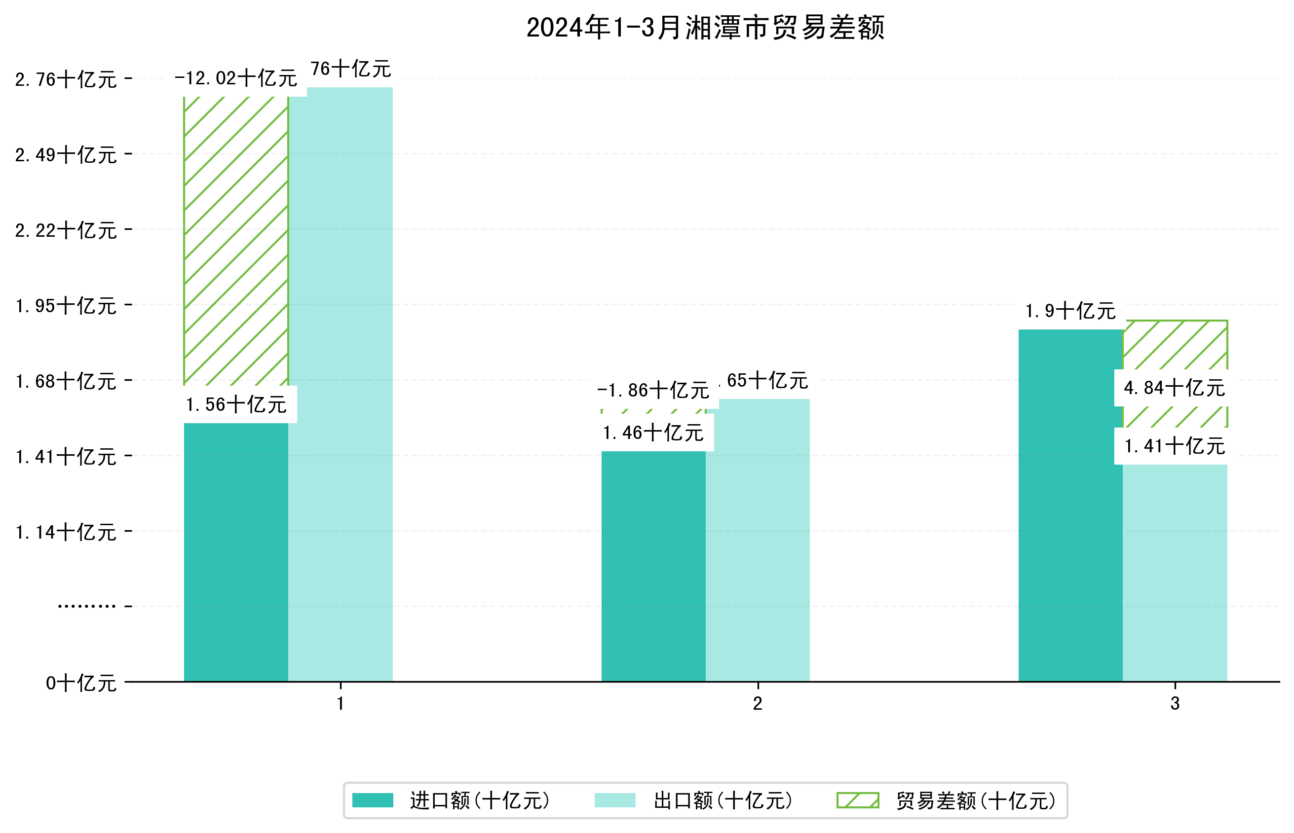 (图四:2024年1-3月湘潭市贸易差额)