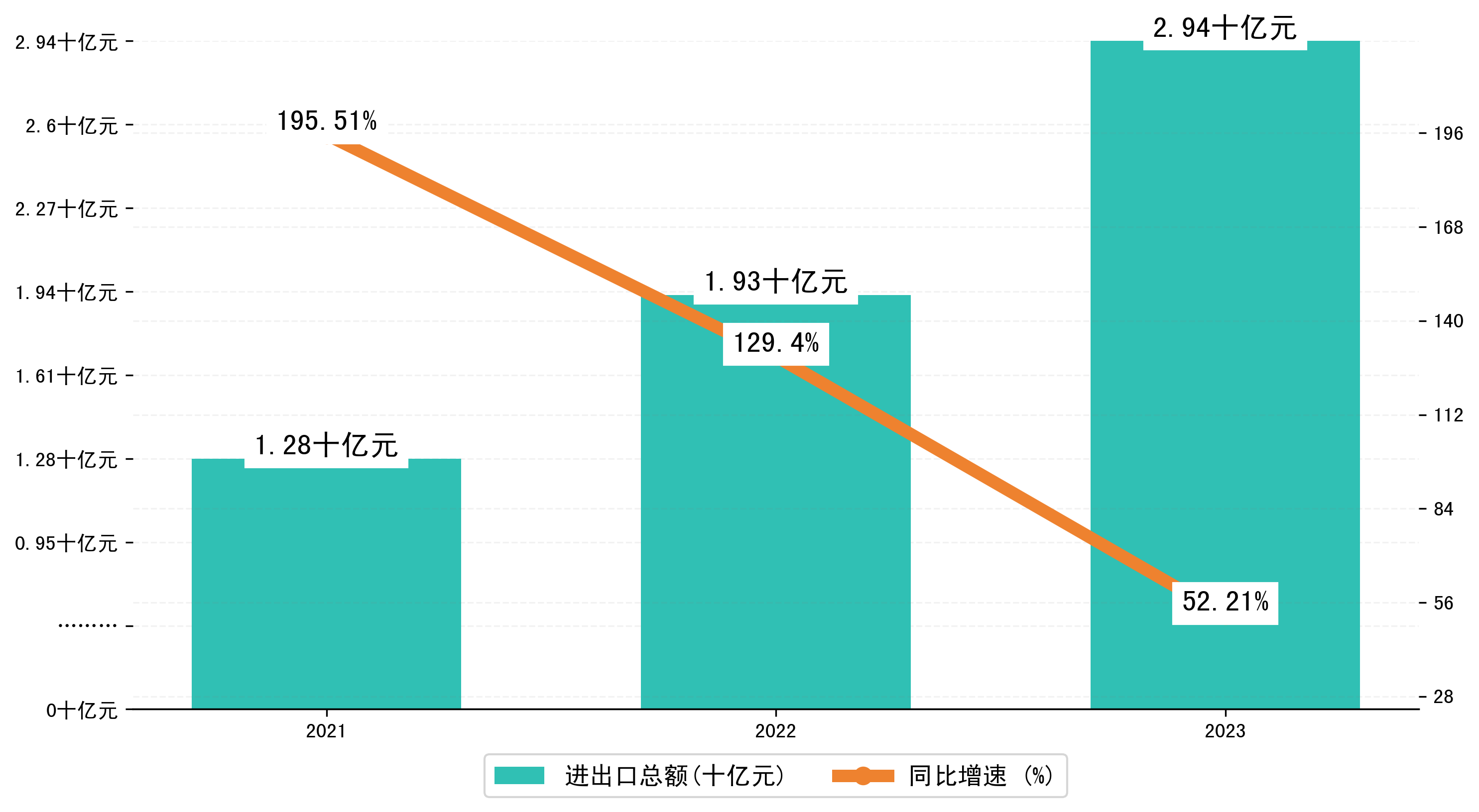 以人民币计,2023年1-1月湘潭市进出口总额为29,3508.3271万元,相比上年同期增加了10,0679.8685万元,同比增加了42.70%。