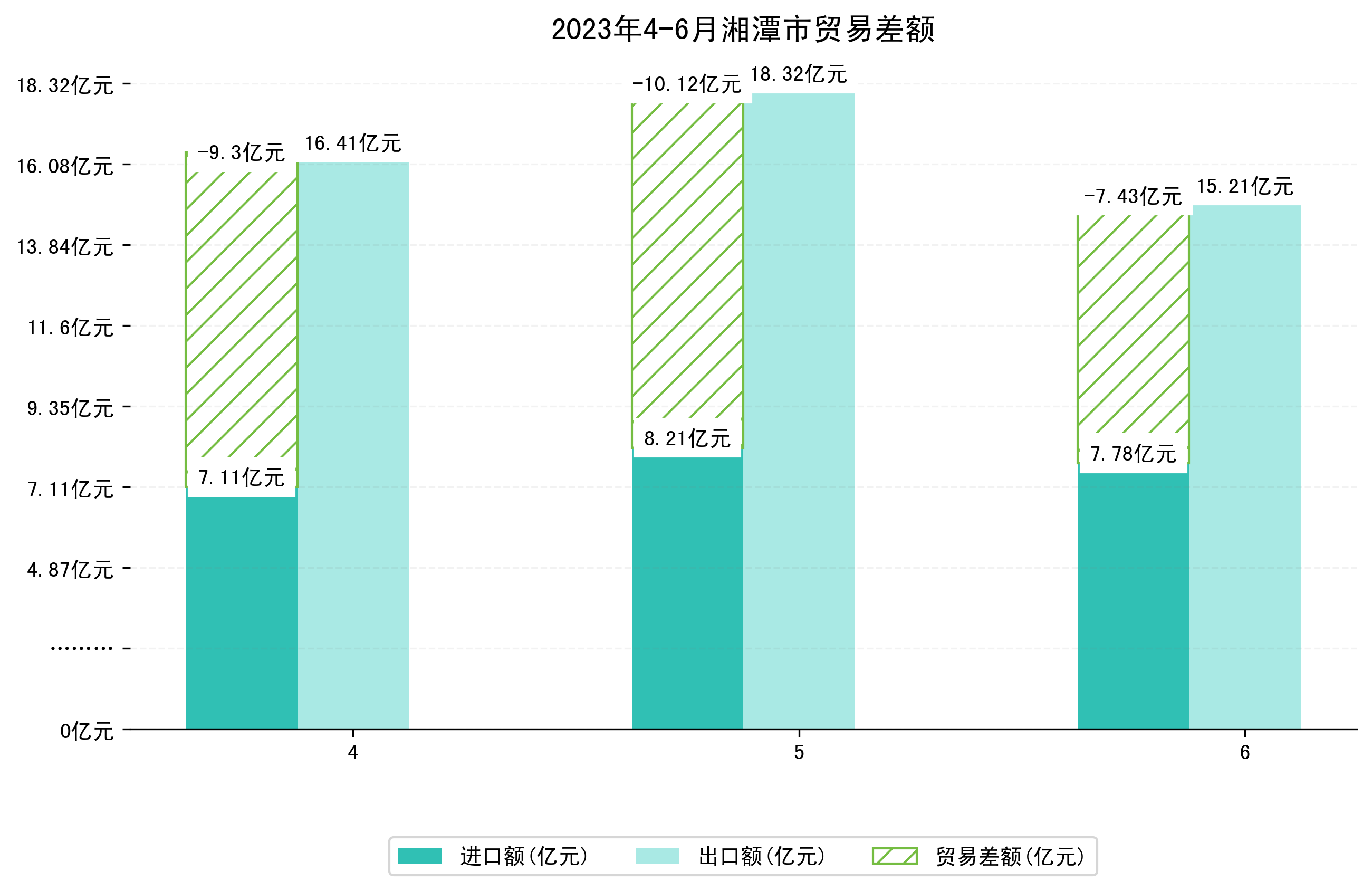 2023年6月湘潭市进出口总额及进出口差额统计分析