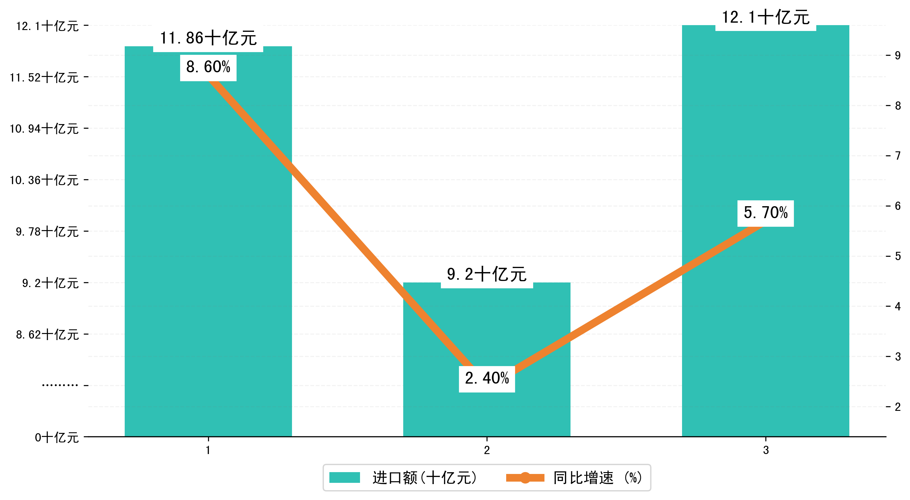 以人民币计,2023年3月大庆市进口额为120,9732.3193万元,相比上月增加了29,0159.6748万元;相比上年同期增加了13,1619.5586万元,同比增加了5.70%。