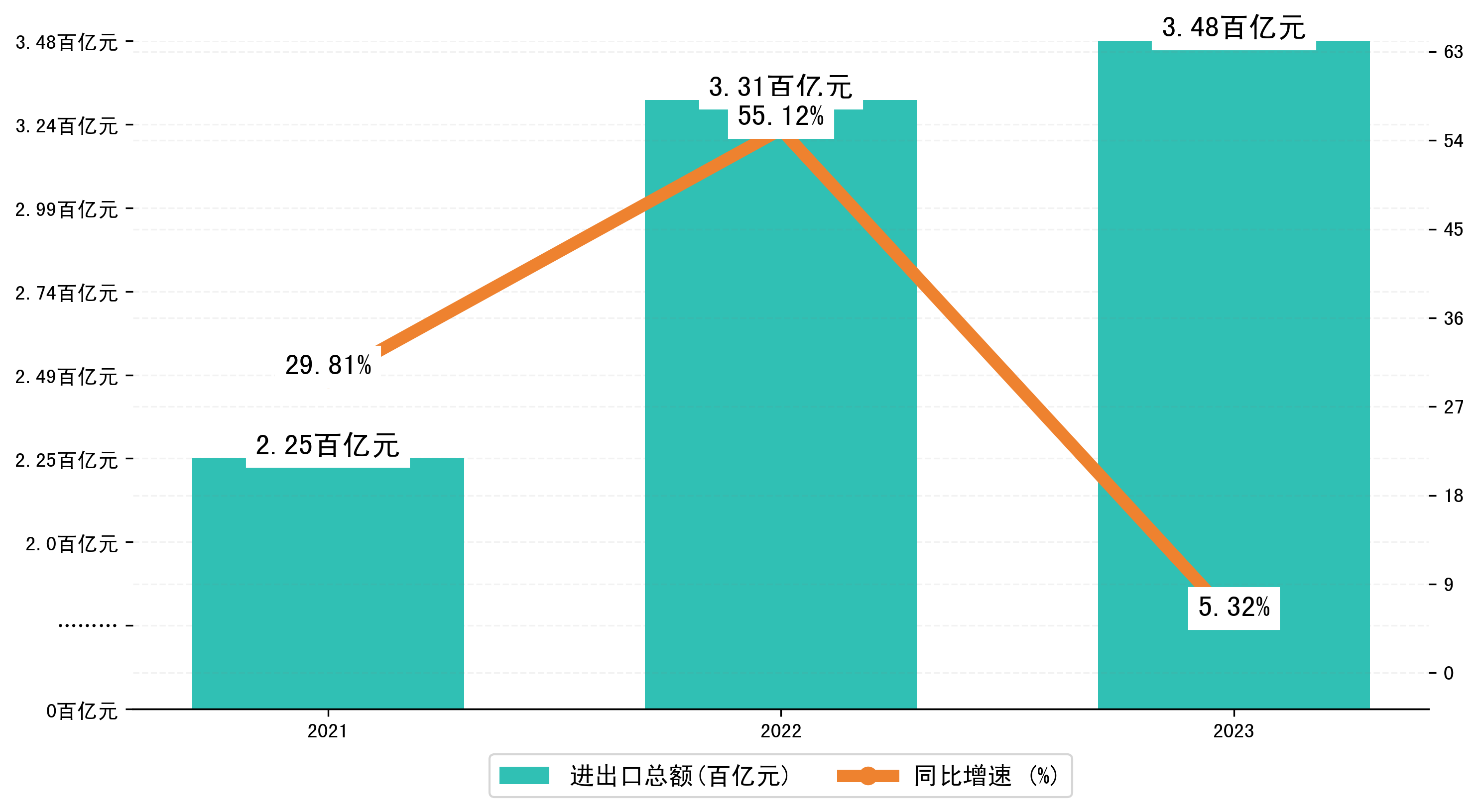 以人民币计,2023年1-3月大庆市进出口总额为348,4421.7157万元,相比上年同期增加了17,6000.9489万元,同比增加了5.30%。