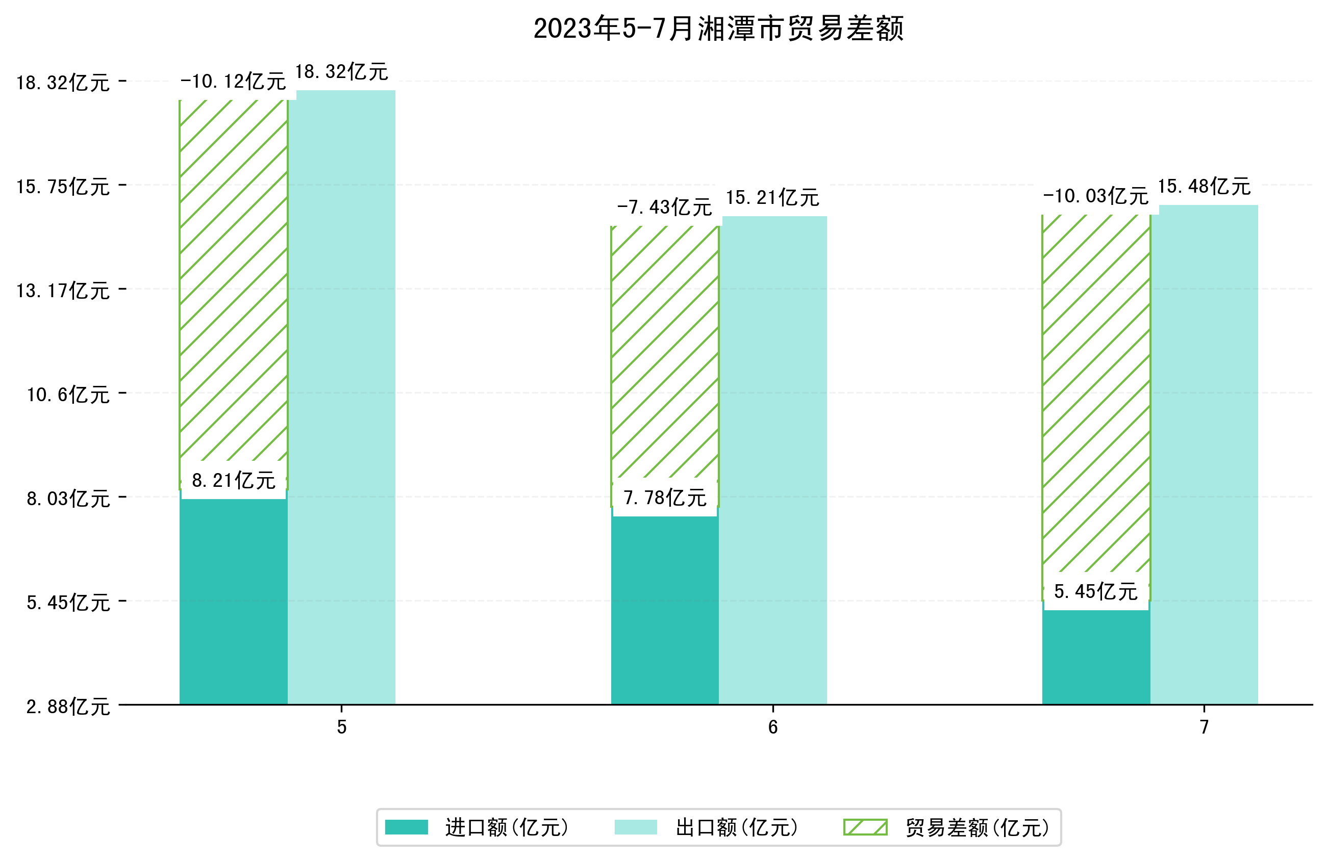 2023年7月湘潭市进出口总额及进出口差额统计分析
