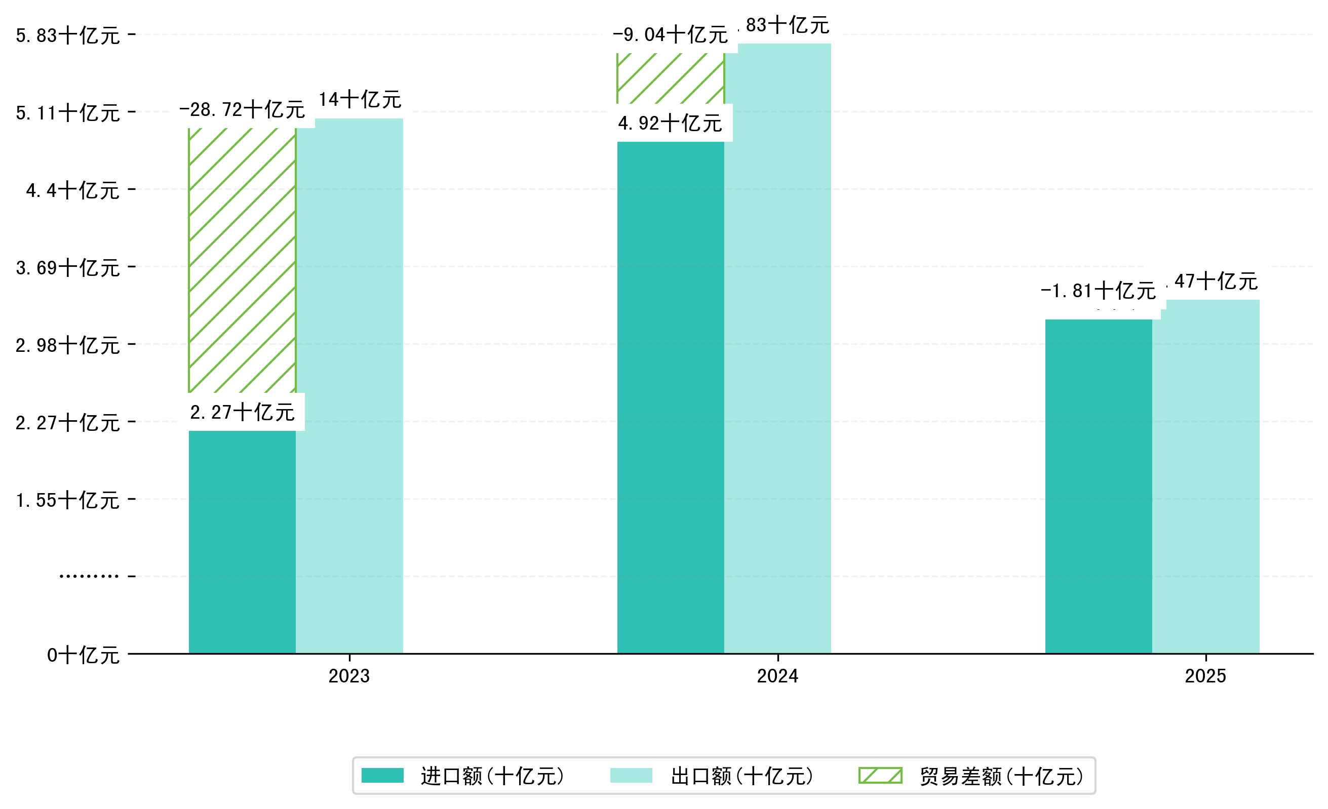 以人民币计,2025年1-3月湘潭市贸易差额为1,8112,3010万元(贸易顺差),相比上年同期减少了7,2276,7253万元,同比减少-79.96%。