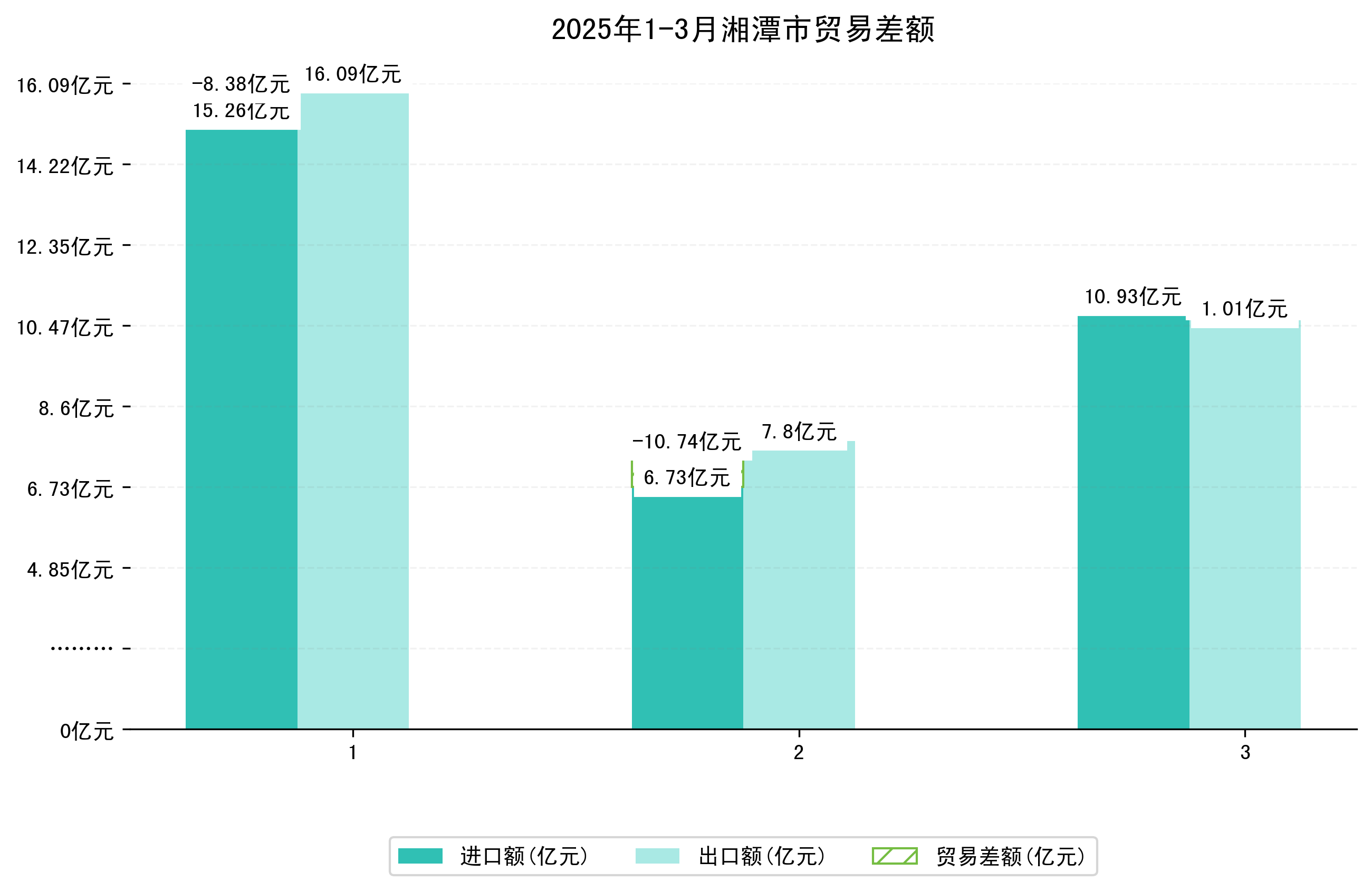 2025年3月湘潭市进出口总额及进出口差额统计分析
