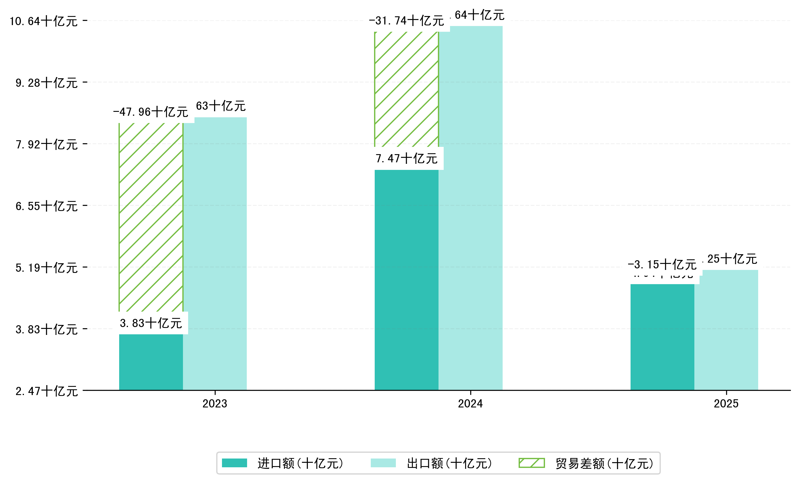 以人民币计,2025年1-5月湘潭市贸易差额为3,1527,4411万元(贸易顺差),相比上年同期减少了28,5920,5262万元,同比减少-90.07%。