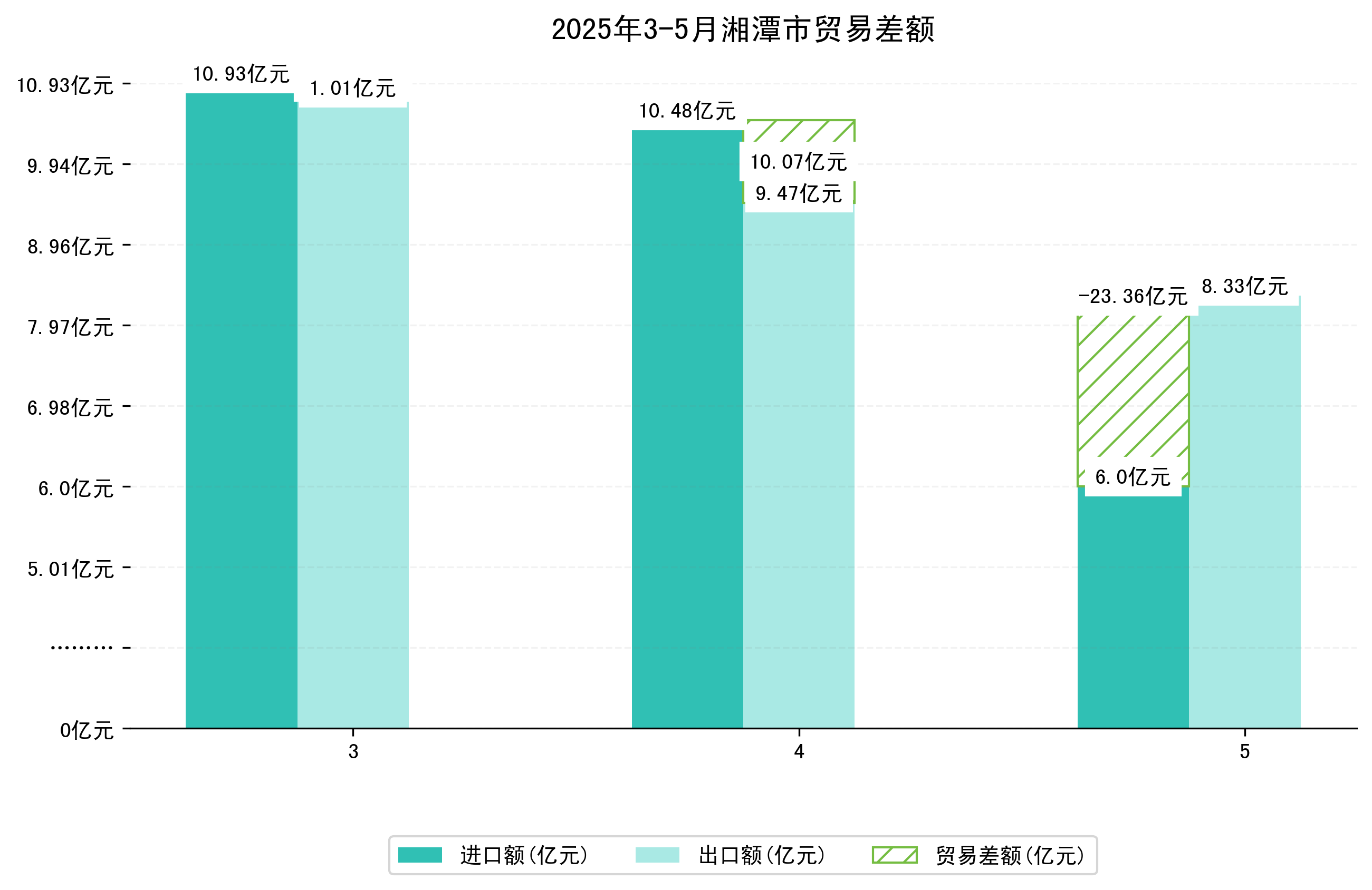 2025年5月湘潭市进出口总额及进出口差额统计分析