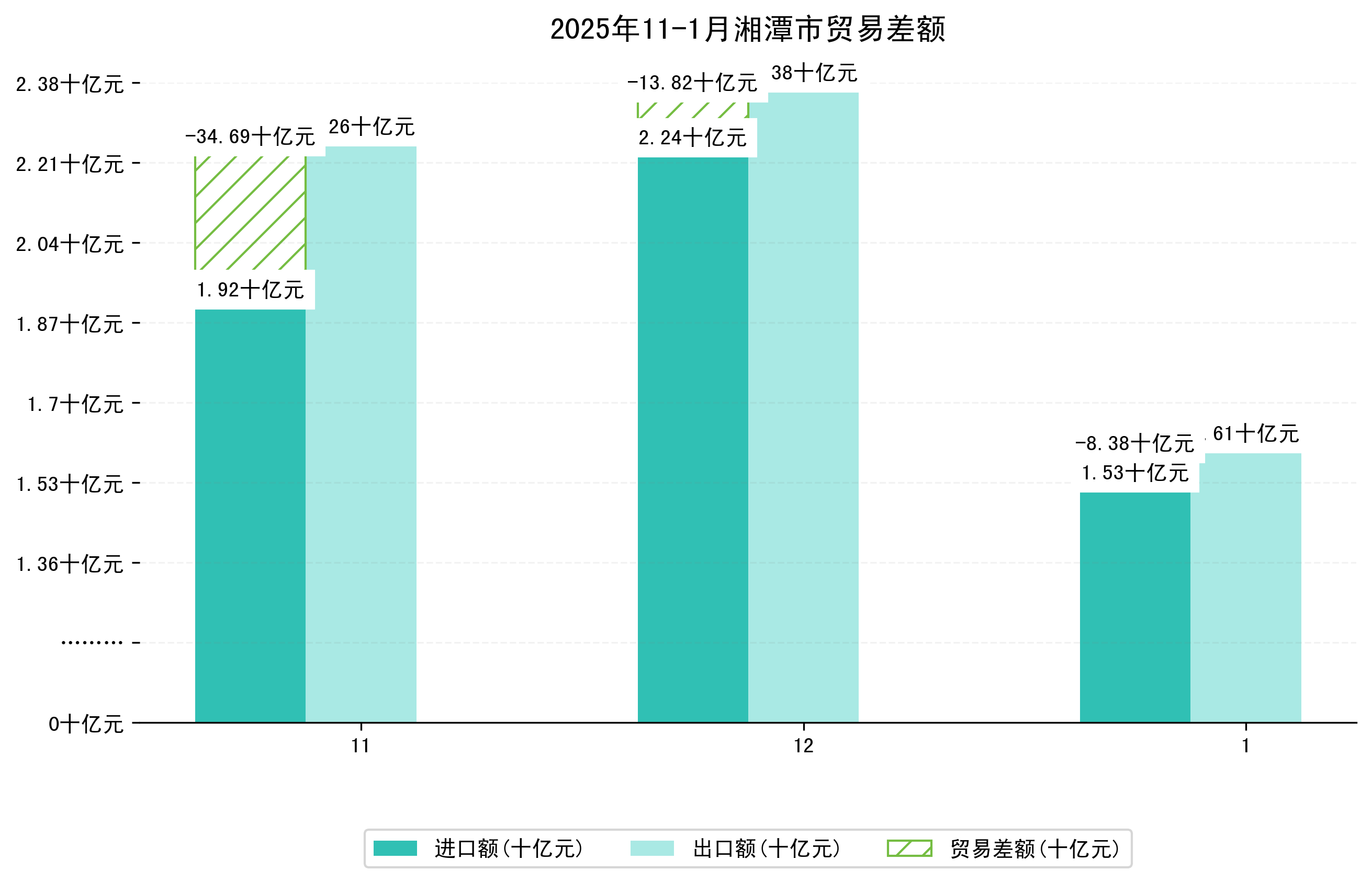 2025年1月湘潭市进出口总额及进出口差额统计分析