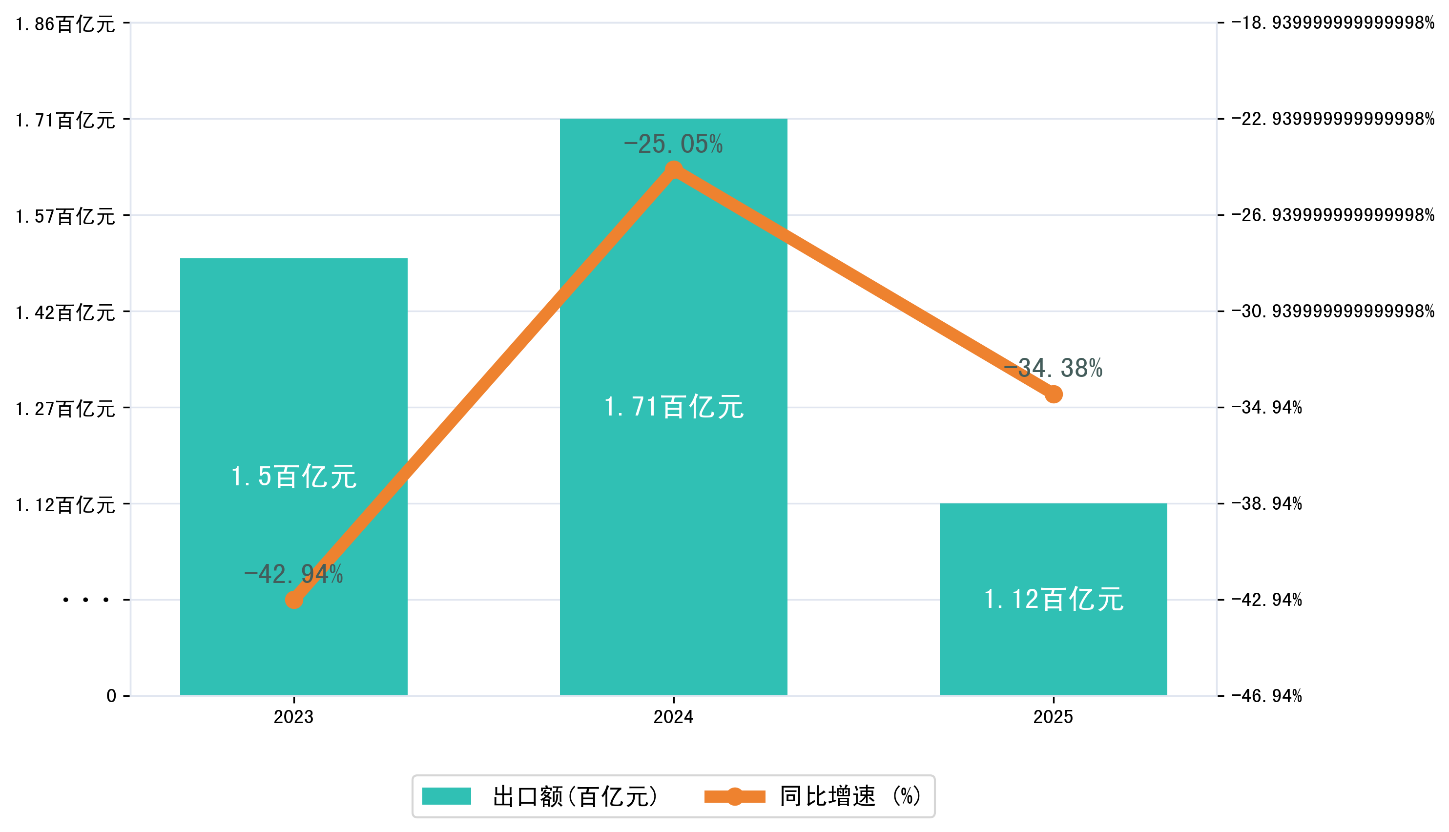 以美元计,2025年1-10月湘潭市出口额为15,6825.2466万美元,相比上年同期减少了8,4272.8682万美元,同比减少-35.00%。
