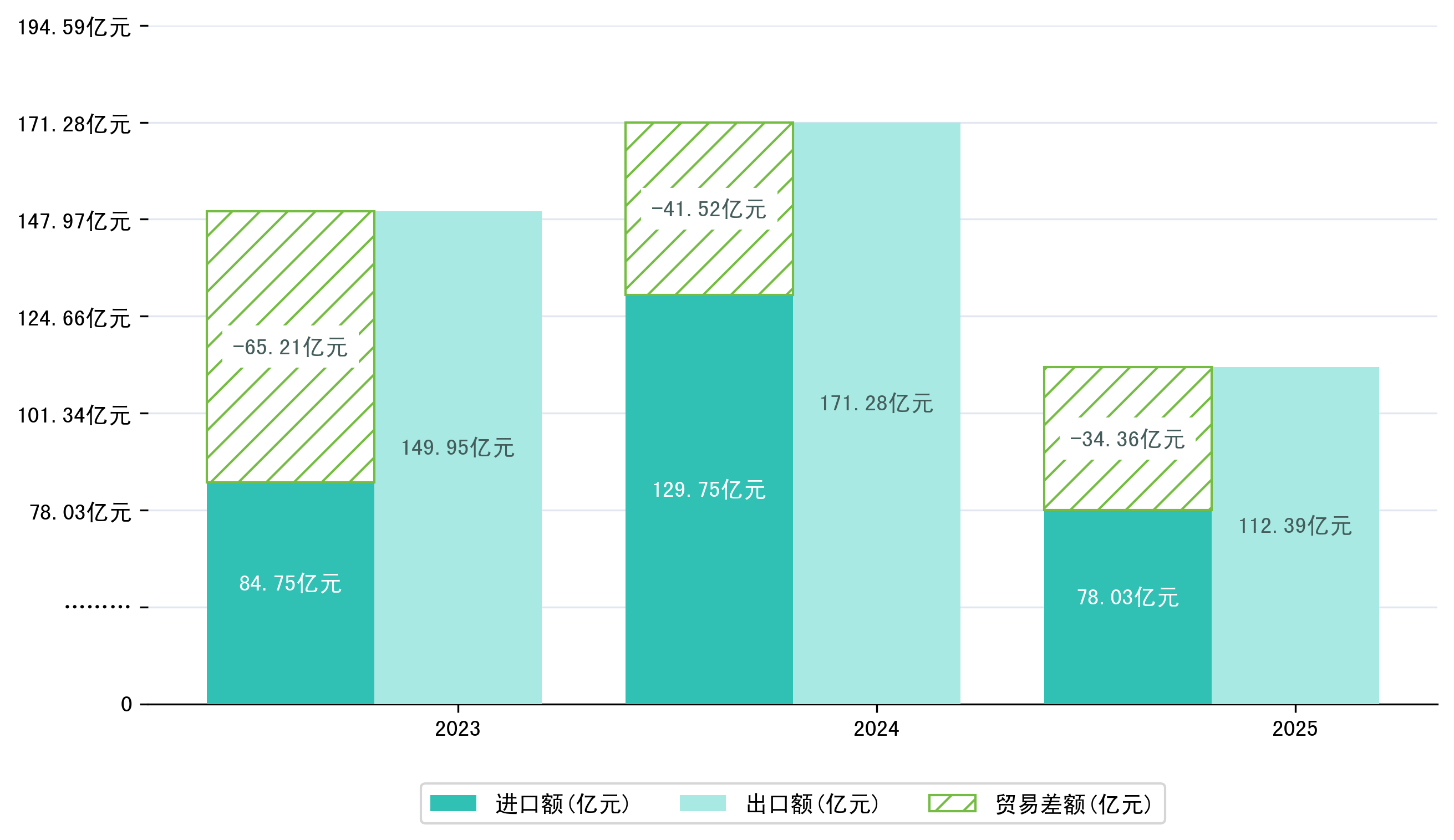 以美元计,2025年1-10月湘潭市贸易差额为4,8042,3360万美元(贸易顺差),相比上年同期减少了1,0517,7561万美元,同比减少-17.96%。