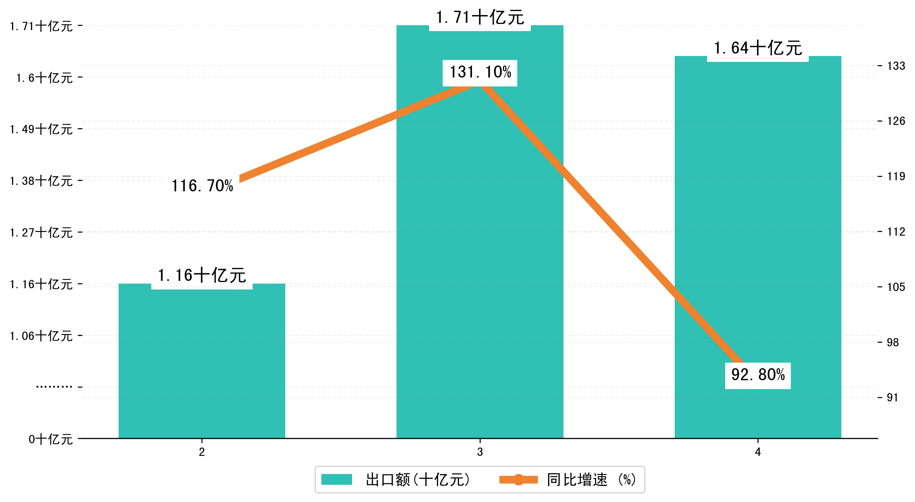 (图二:2023年2-4月湘潭市出口额)