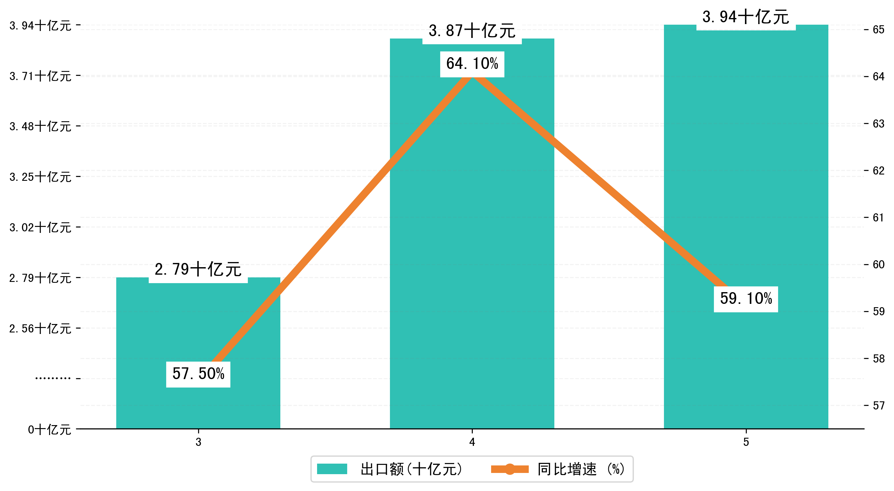 (图二:2023年3-5月襄阳市出口额)