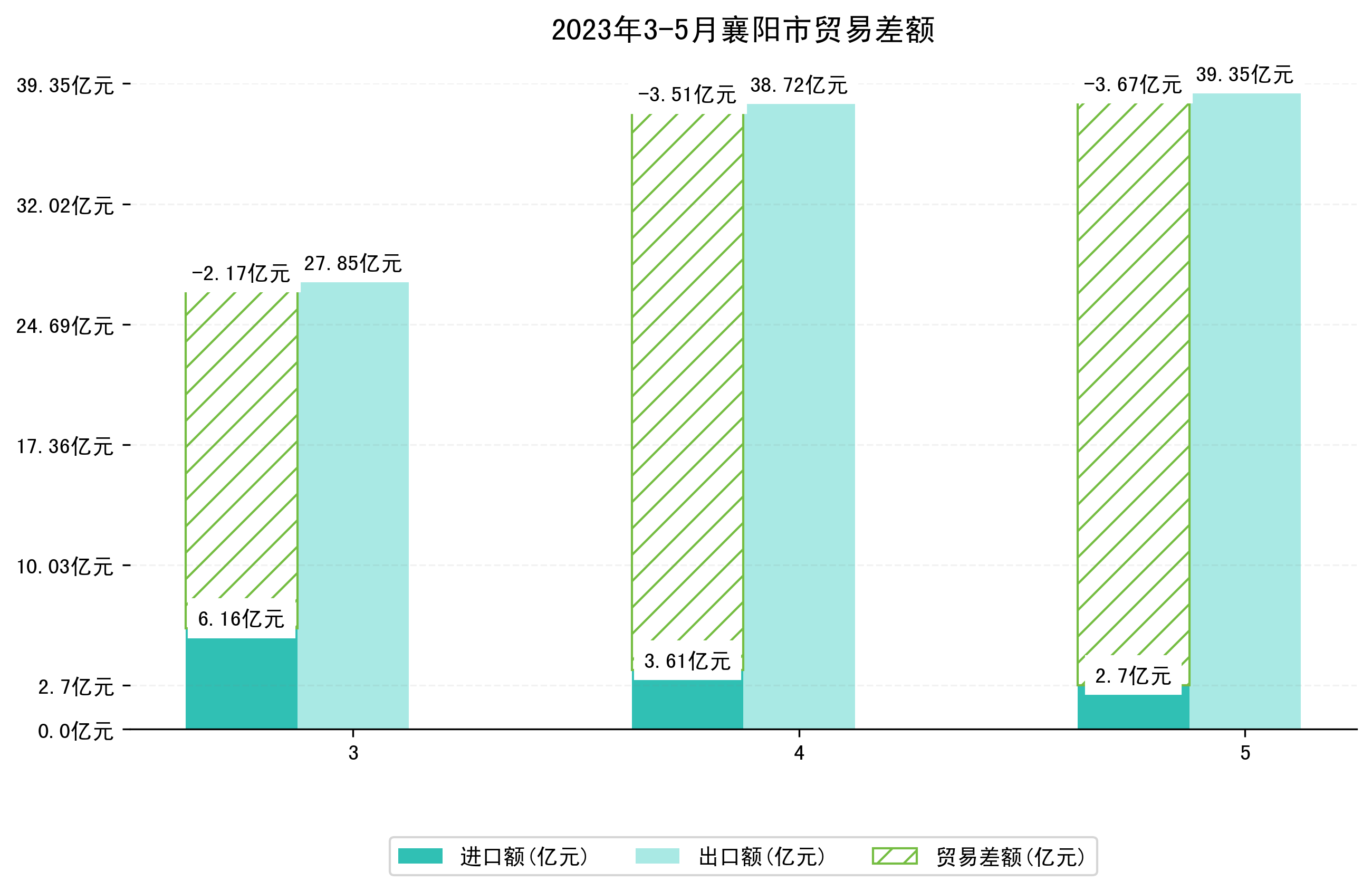 (图四:2023年3-5月襄阳市贸易差额)