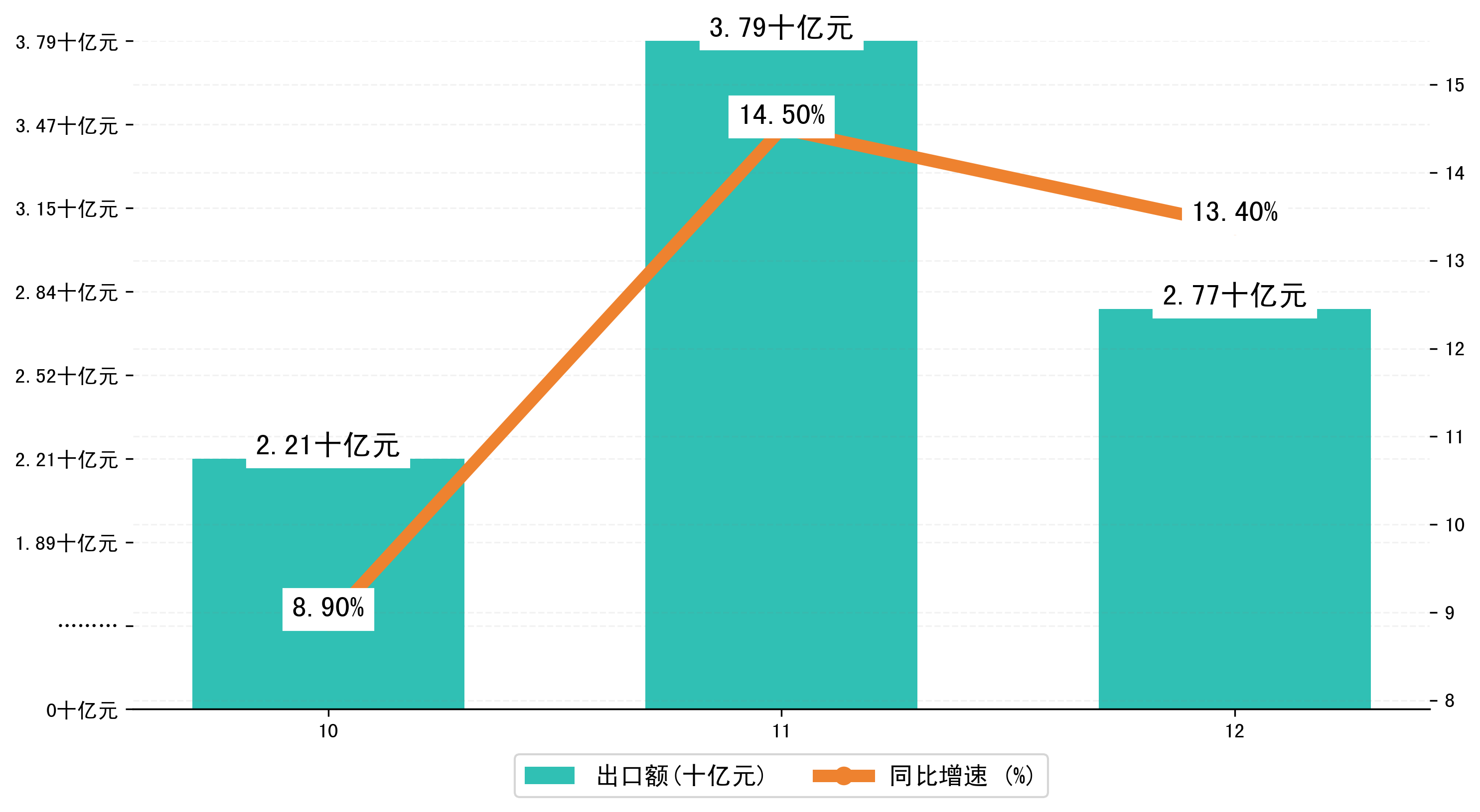 (图二:2023年10-12月襄阳市出口额)