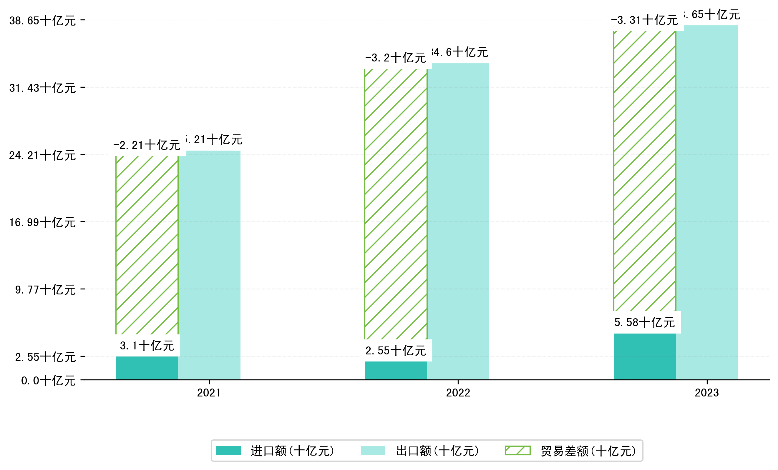 以人民币计,2023年1-12月襄阳市贸易差额为330,7554,2363万元(贸易顺差),相比上年同期增加了10,2935,3931万元,同比增加3.21%。