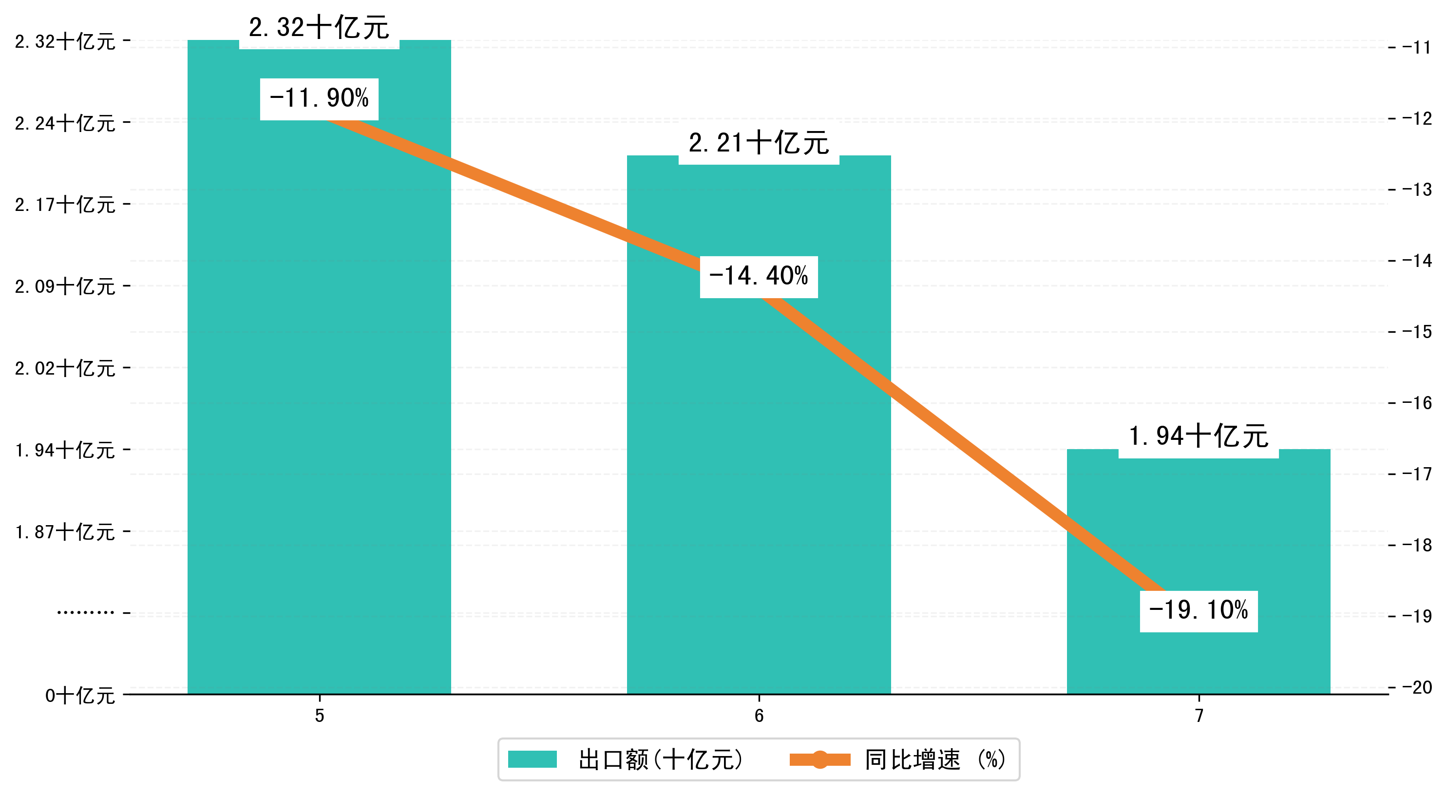 (图二:2024年5-7月襄阳市出口额)