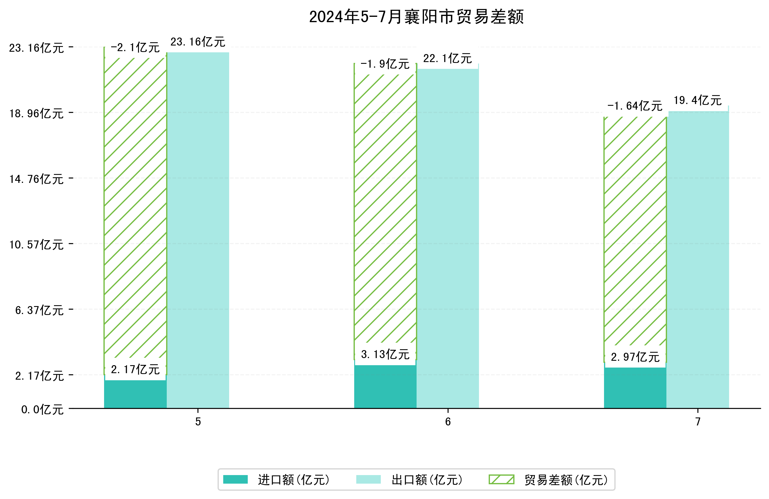 (图四:2024年5-7月襄阳市贸易差额)