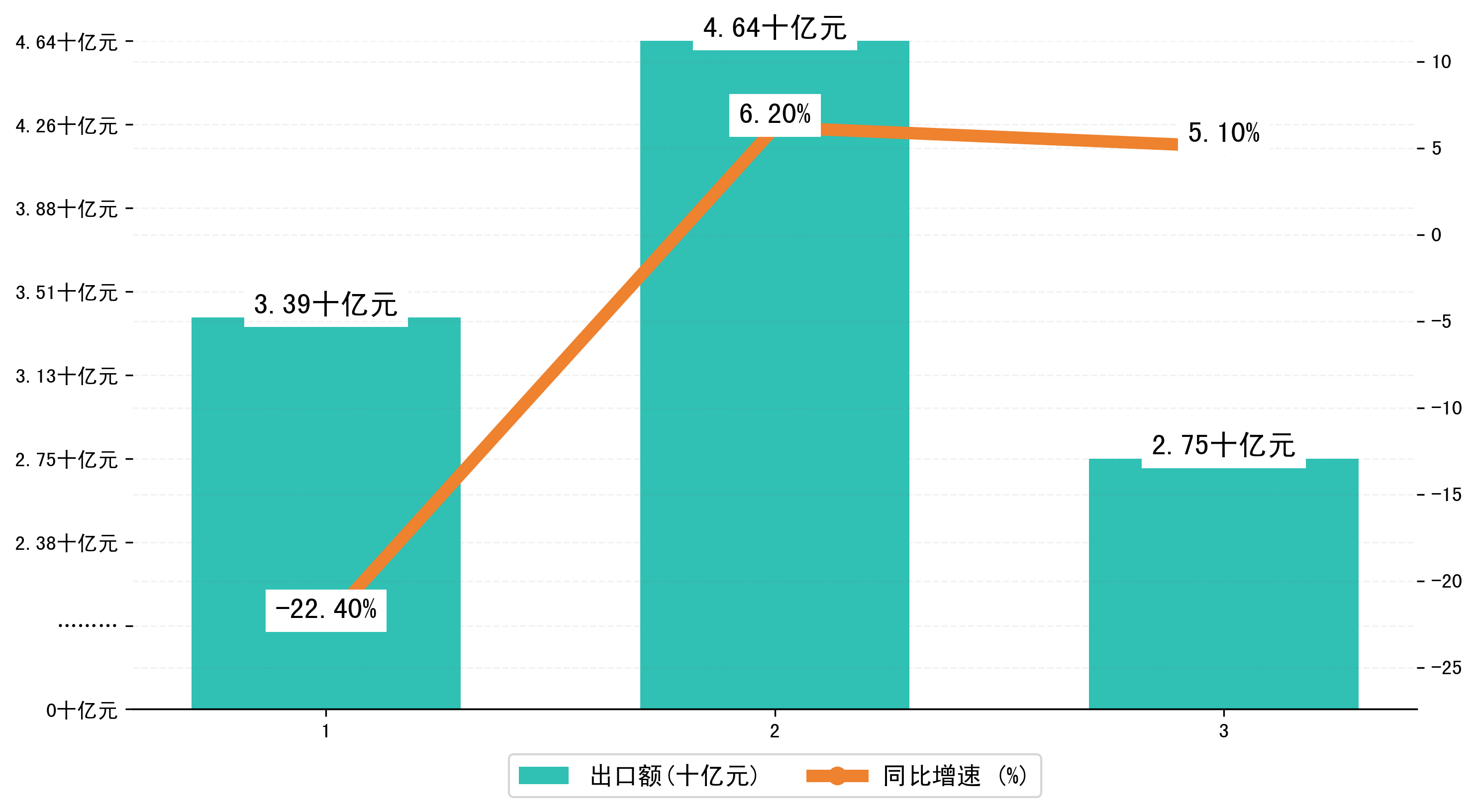 以美元计,2024年1-3月襄阳市进出口总额为17,1654.4475万美元,相比上年同期增加了2512.033万美元,同比增加3.80%。