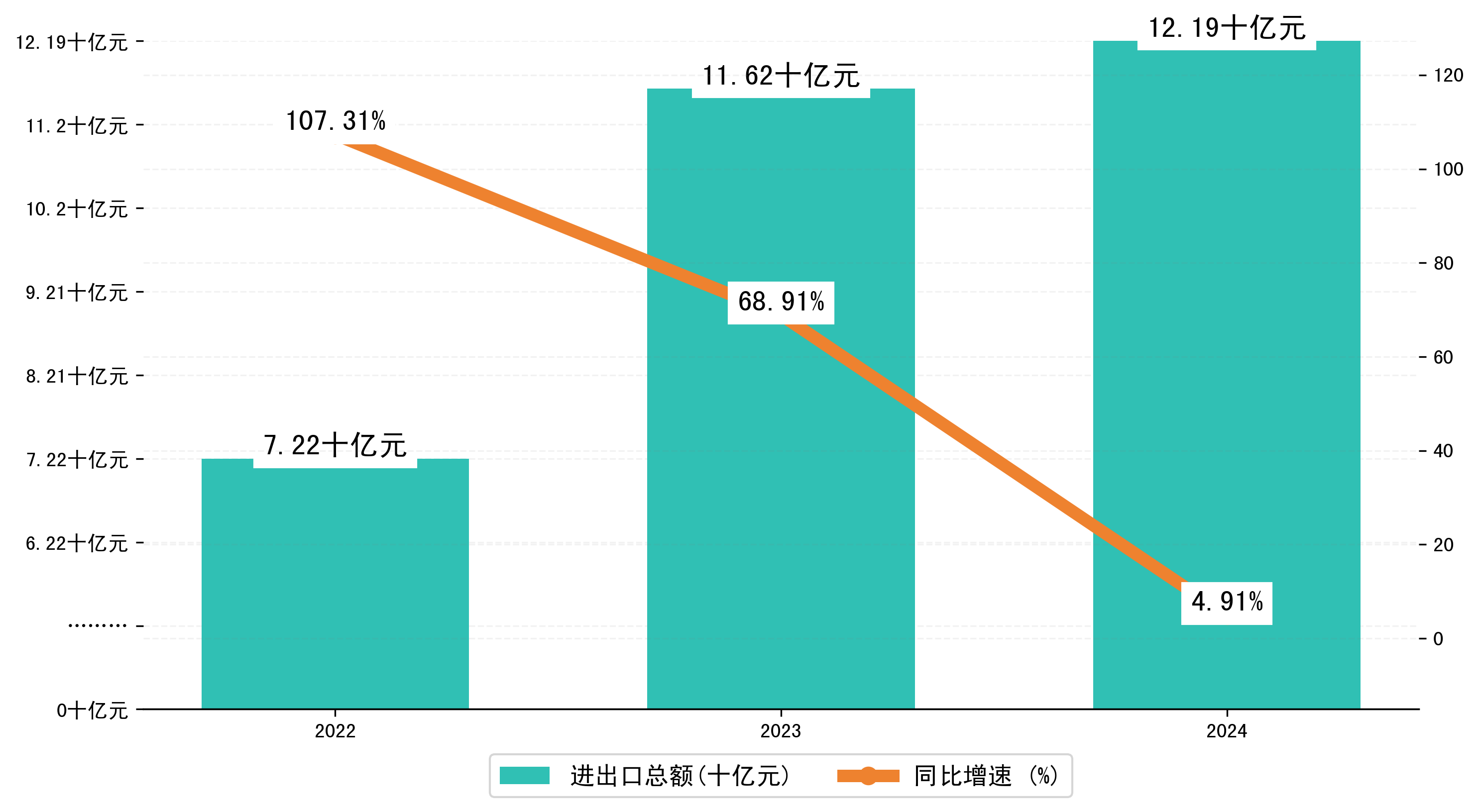 以人民币计,2024年1-3月襄阳市进出口总额为121,9183.3246万元,相比上年同期增加了5,7111.6752万元,同比增加了7.20%。
