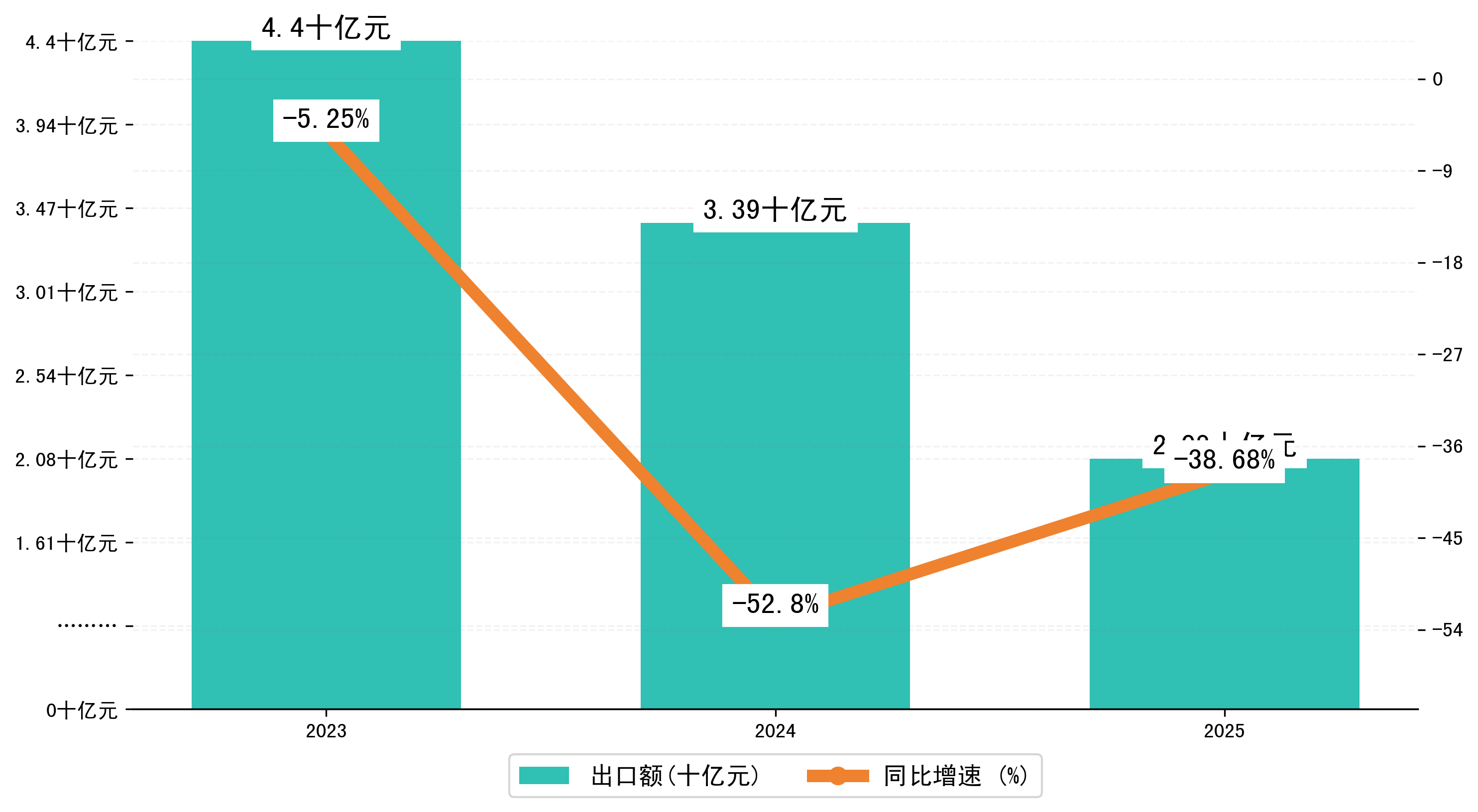以美元计,2025年1月襄阳市出口额为2,8902.4365万美元,相比上月减少了1,5595.4523万美元;相比上年同期减少了1,8828.5896万美元,同比减少-34.30%。