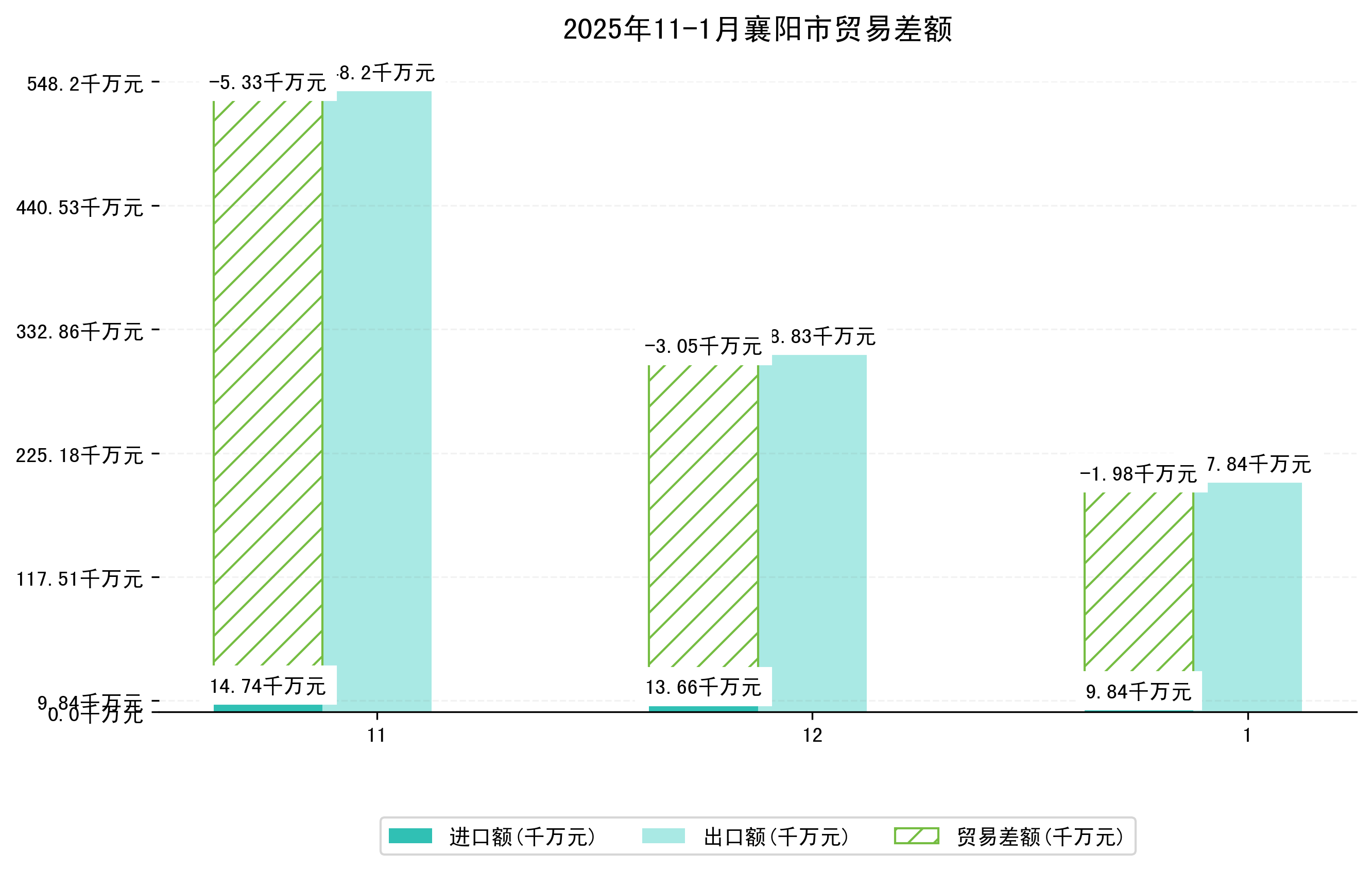 一、2025年1月襄阳市单月出口总额及进出口差额统计分析