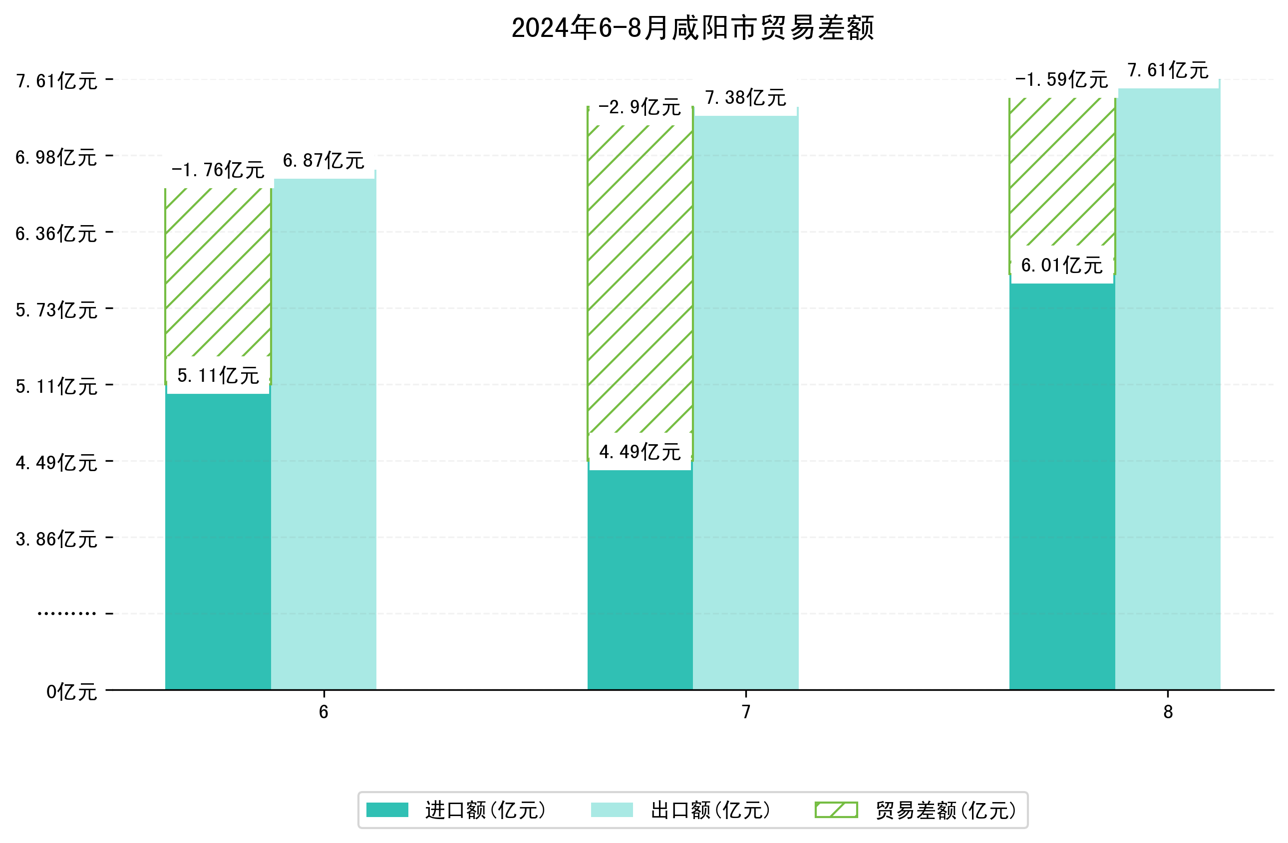 2024年8月咸阳市进出口总额及进出口差额统计分析