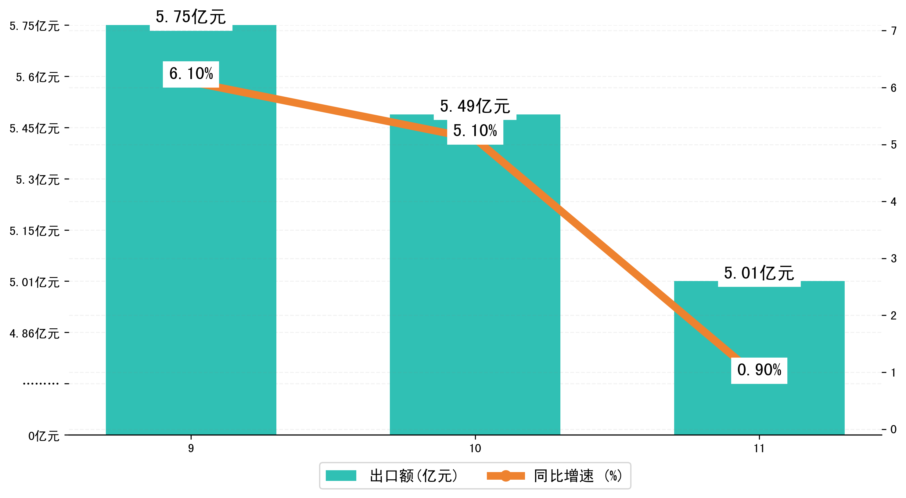 (图二:2024年9-11月咸阳市出口额)