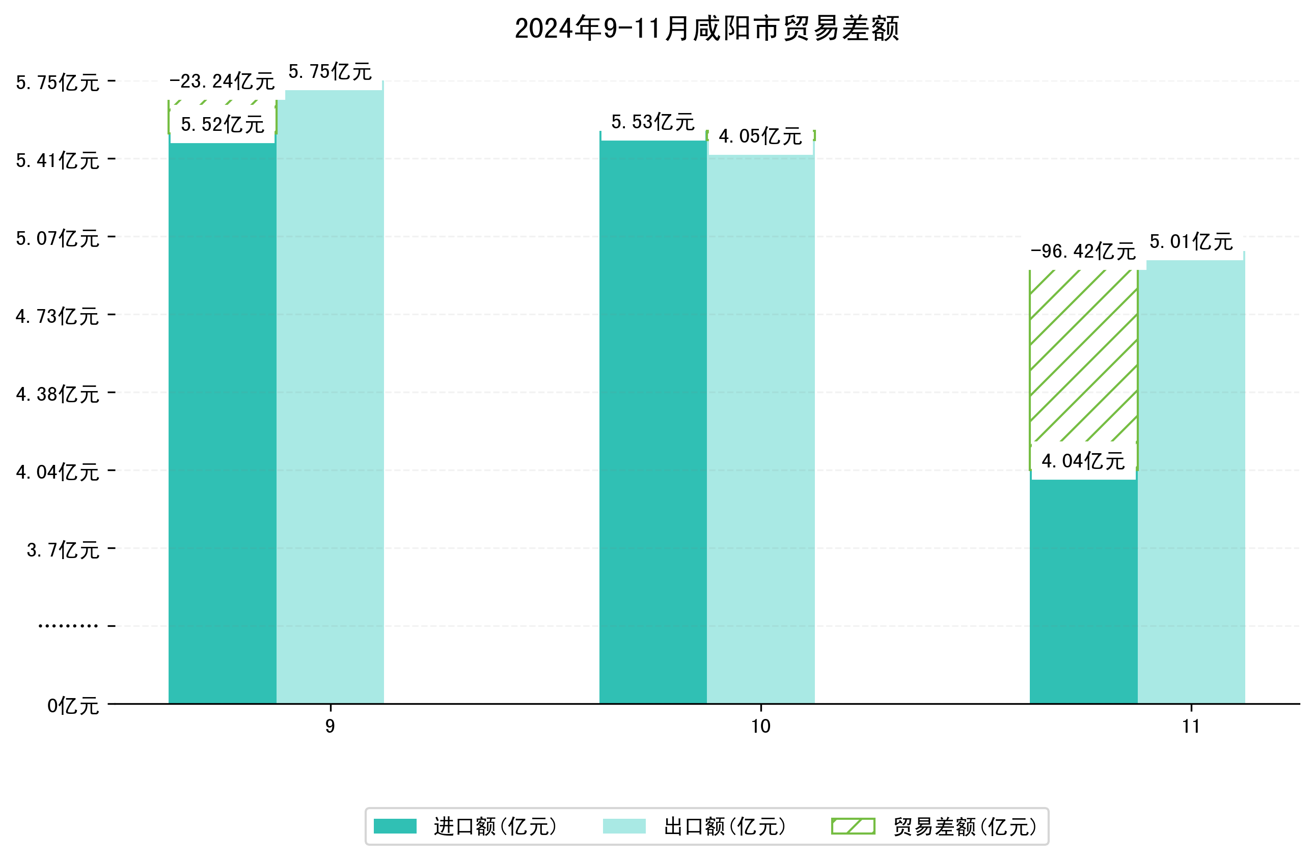 (图四:2024年9-11月咸阳市贸易差额)