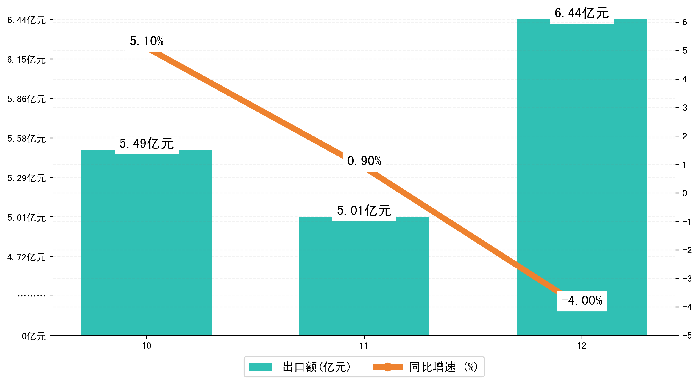 以人民币计,2024年12月咸阳市出口额为6,4380.6694万元,相比上月增加了1,4327.3221万元;相比上年同期减少了3,7754.7734万元,同比减少了-4.00%。