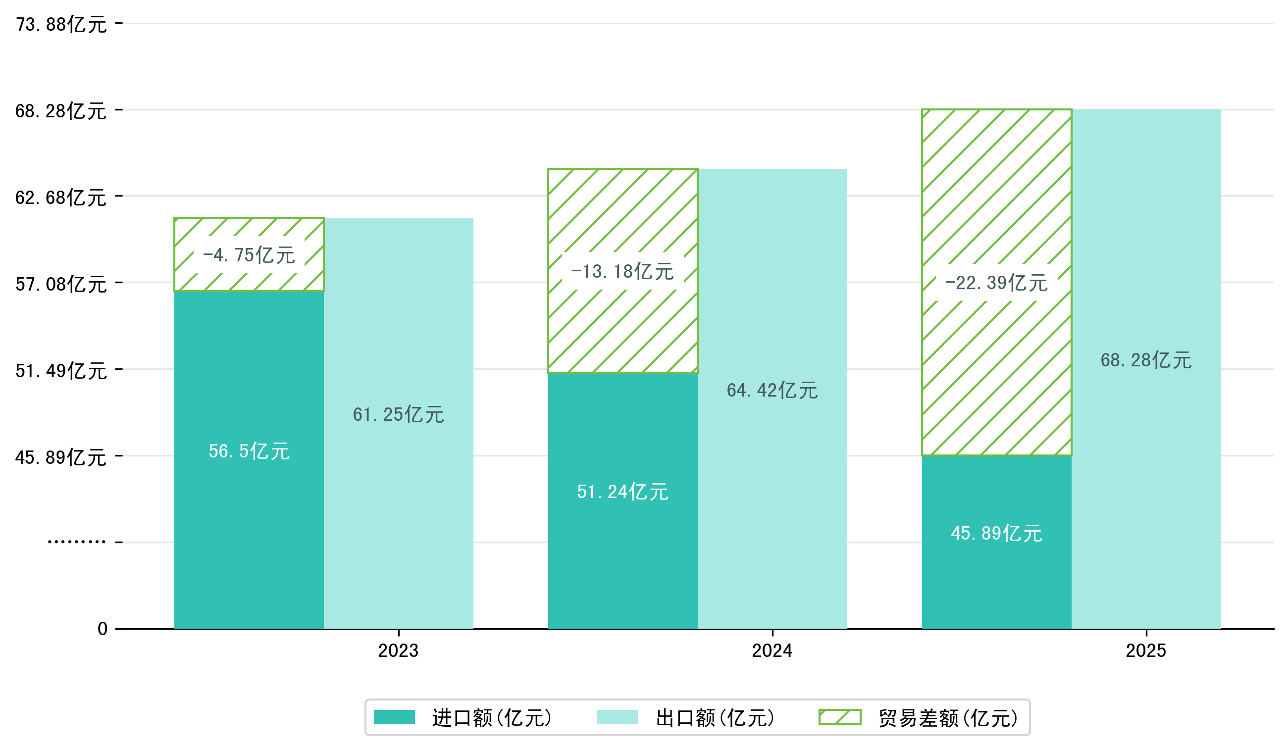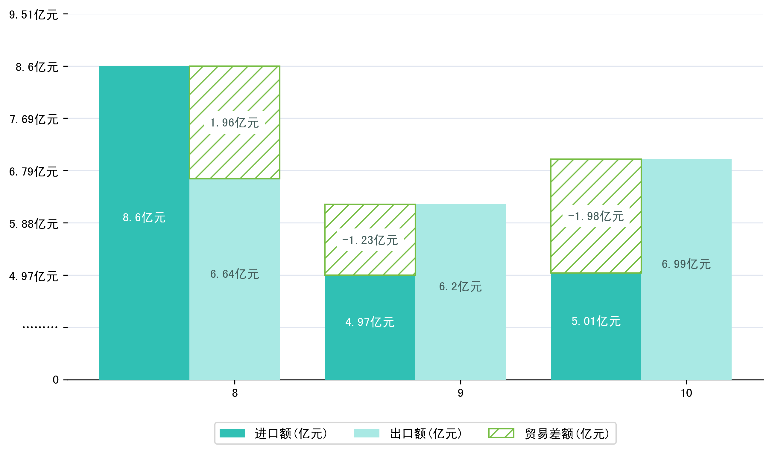 以人民币计,2025年1-10月咸阳市贸易差额为22,3922,9810万元(贸易顺差),相比上年同期增加了9,2080,4696万元,同比增加69.84%。