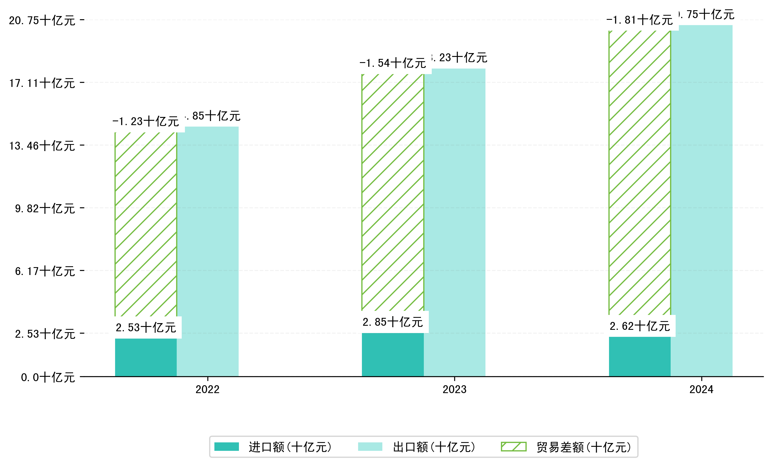 以人民币计,2024年1-12月孝感市贸易差额为181,2494,3125万元(贸易顺差),相比上年同期增加了27,4865,5373万元,同比增加17.88%。