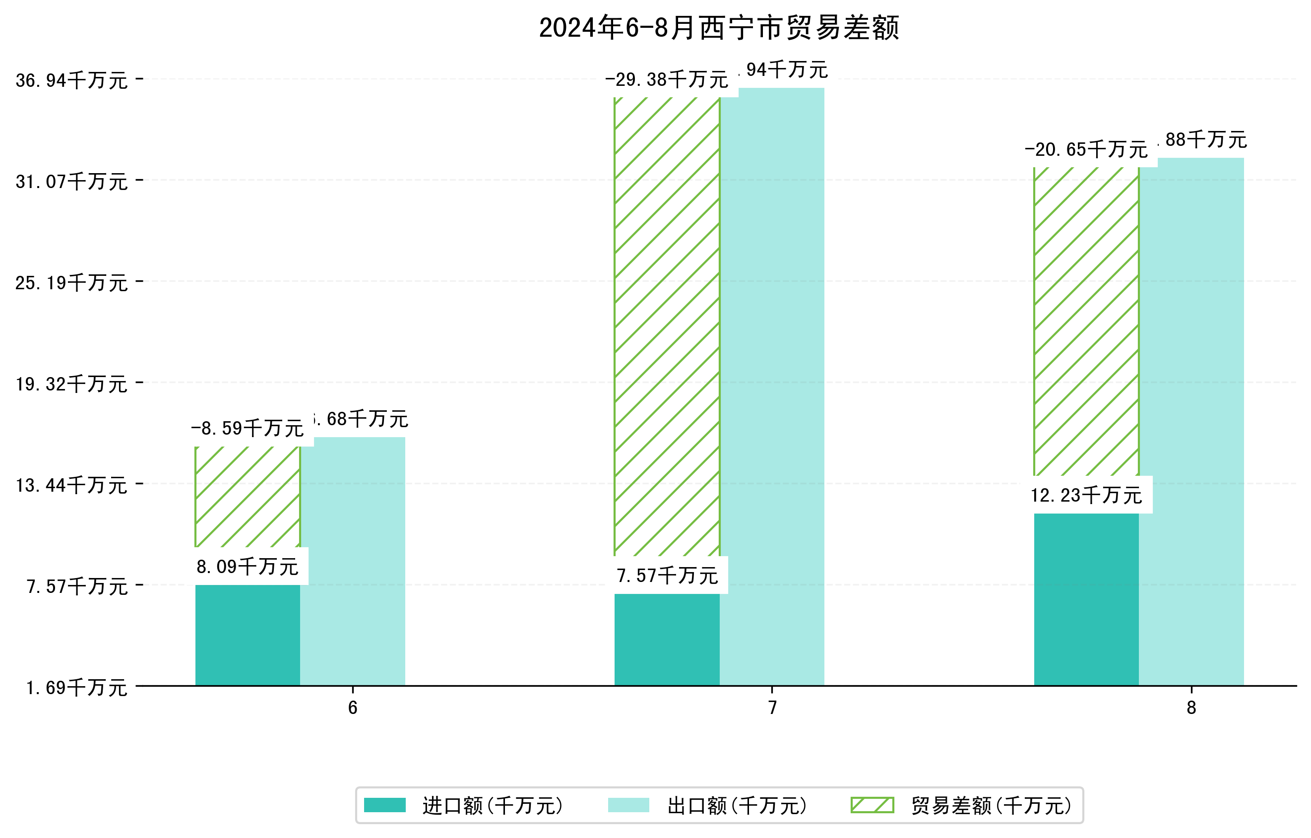 2024年8月西宁市进出口总额及进出口差额统计分析