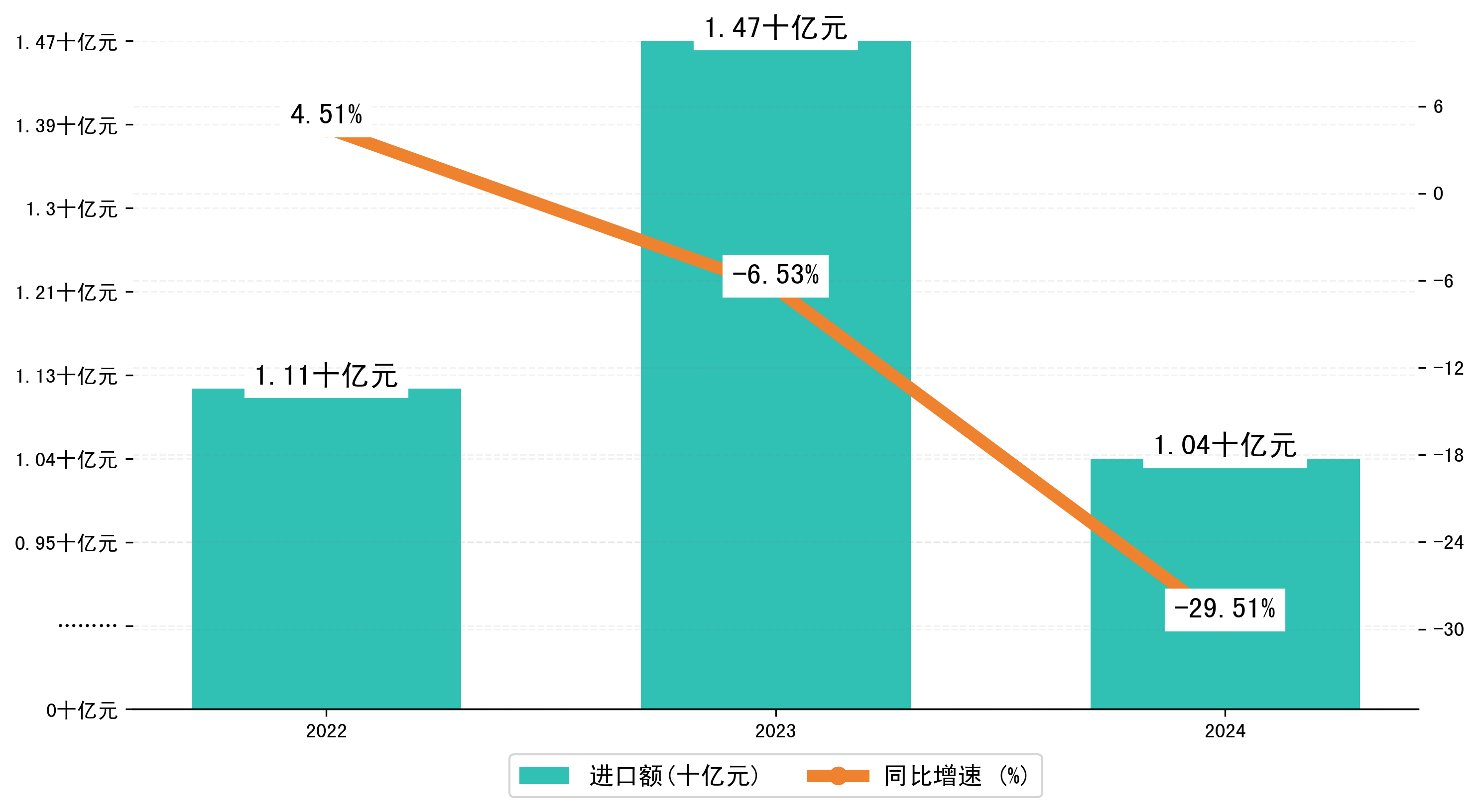 以人民币计,2024年1-9月西宁市进口额为10,3941.2561万元,相比上年同期减少了4,3516.4764万元,同比减少了-29.80%。