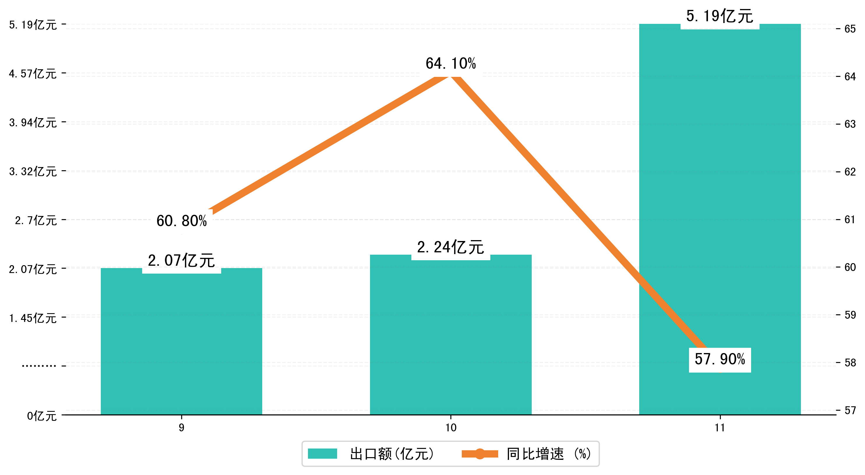 (图二:2024年9-11月西宁市出口额)
