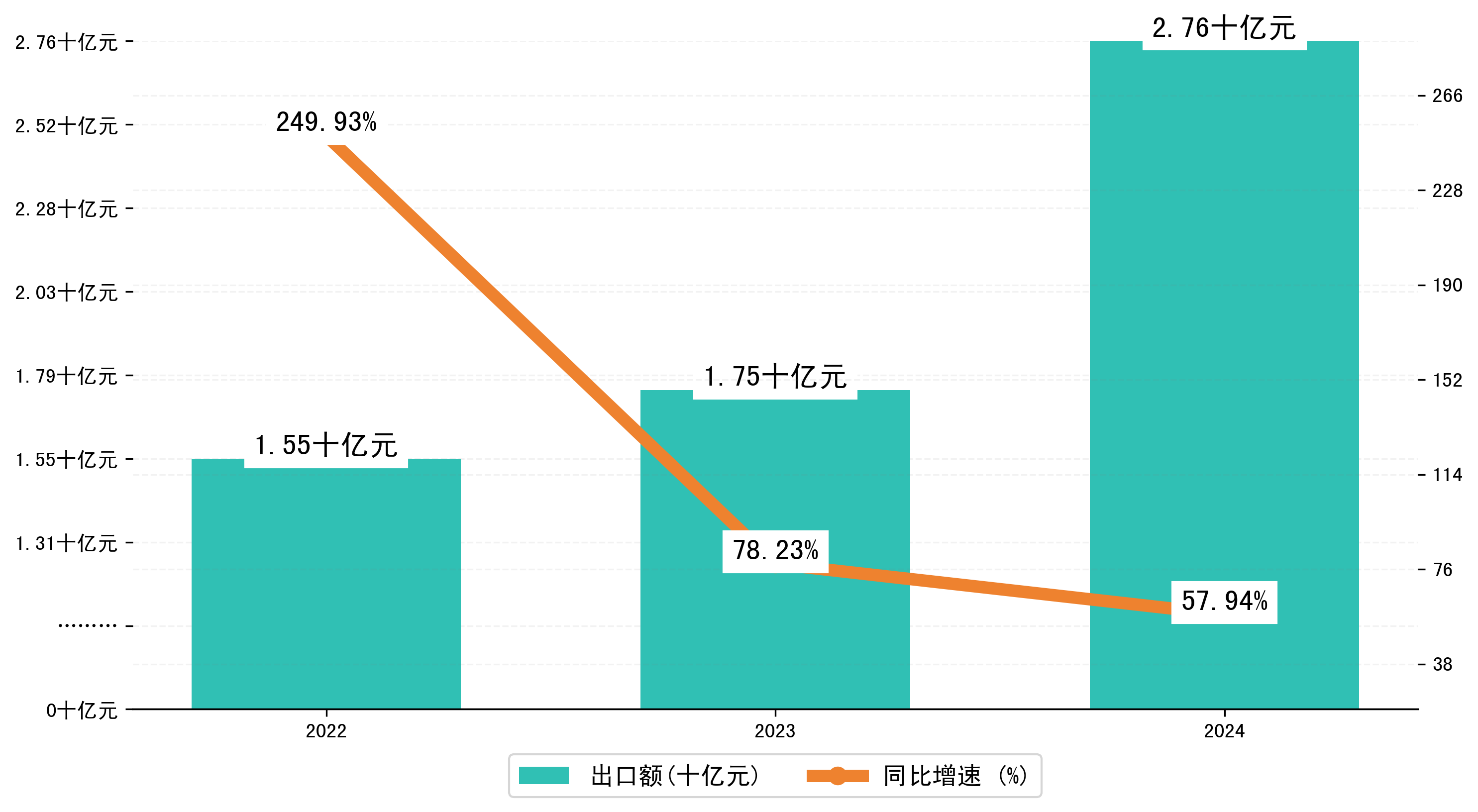 以人民币计,2024年1-11月西宁市出口额为27,6109.1824万元,相比上年同期增加了10,1286.5311万元,同比增加了57.90%。
