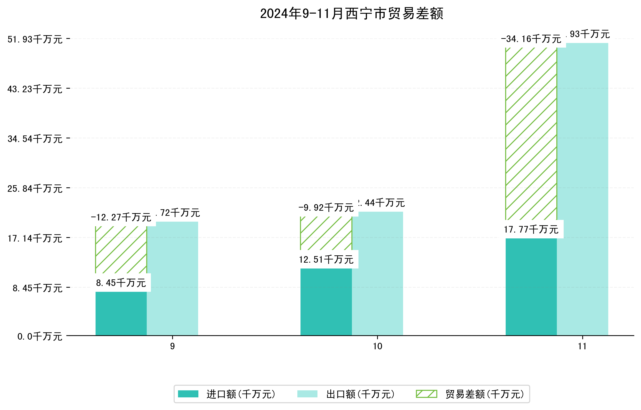 (图四:2024年9-11月西宁市贸易差额)