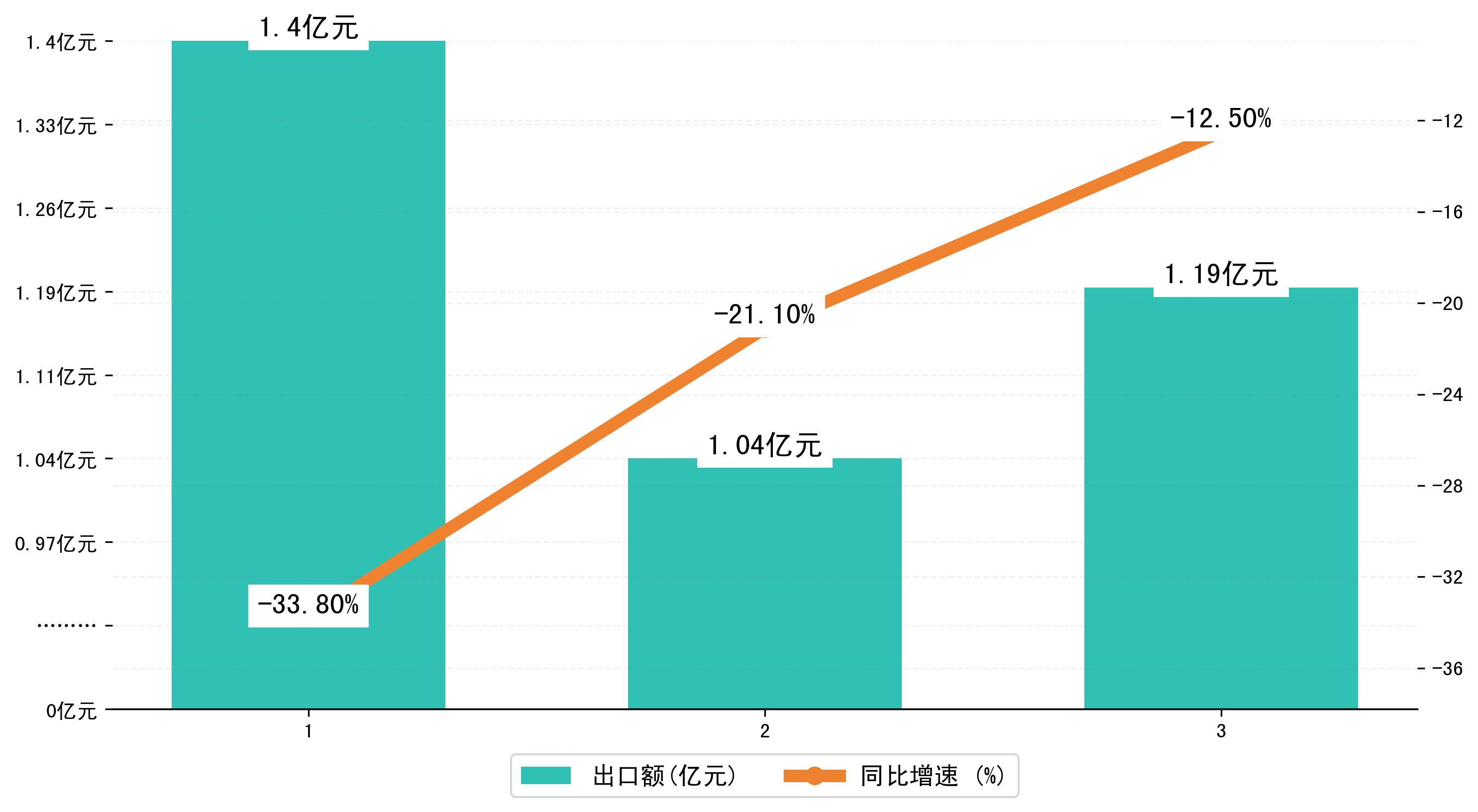以人民币计,2024年1-3月西宁市出口额为3,6264.1521万元,相比上年同期减少了8636.6639万元,同比减少了-12.50%。