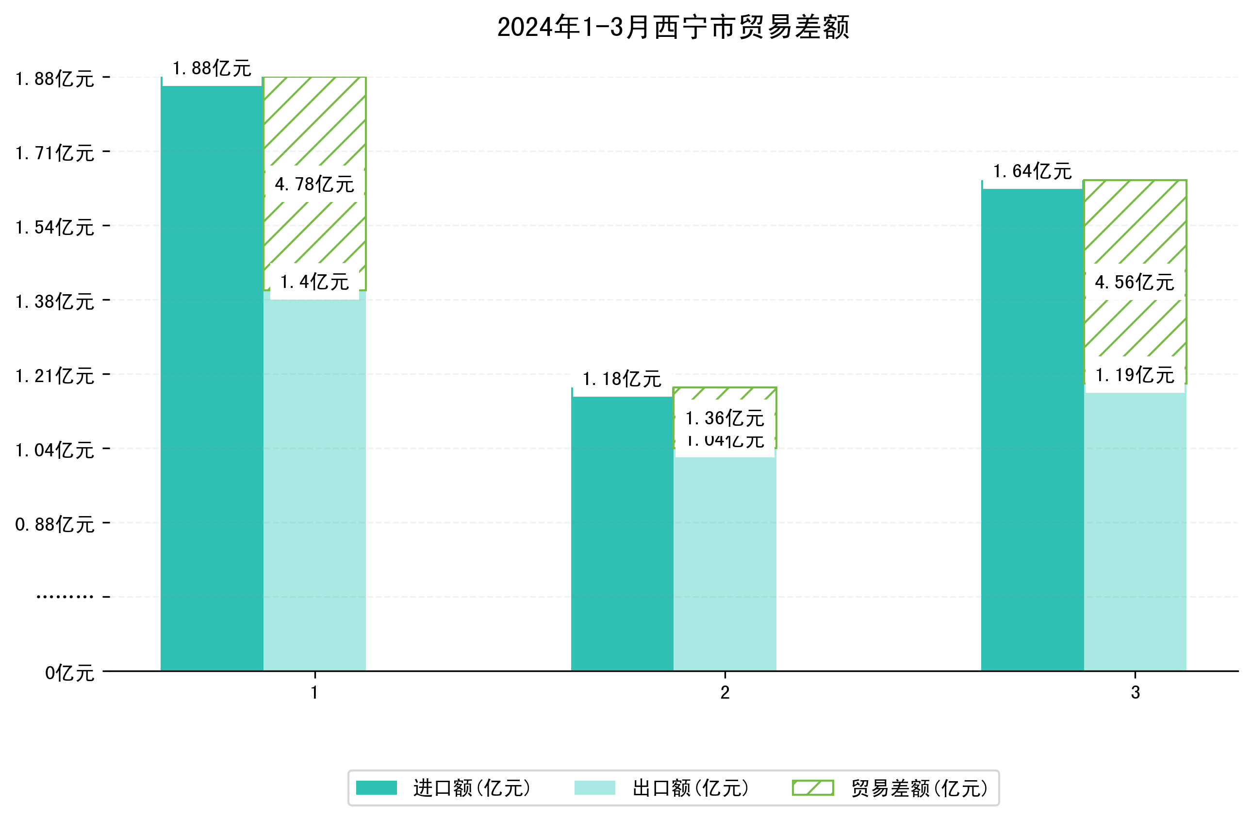 2024年3月西宁市进出口总额及进出口差额统计分析