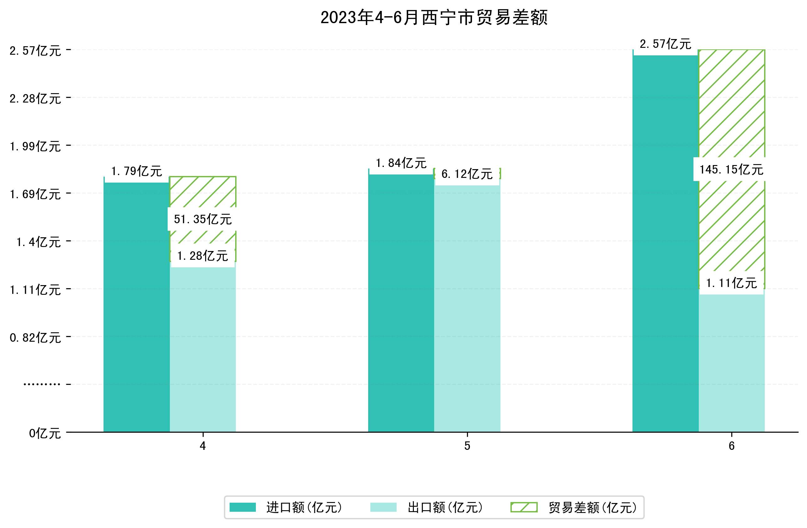 2023年6月西宁市进出口总额及进出口差额统计分析