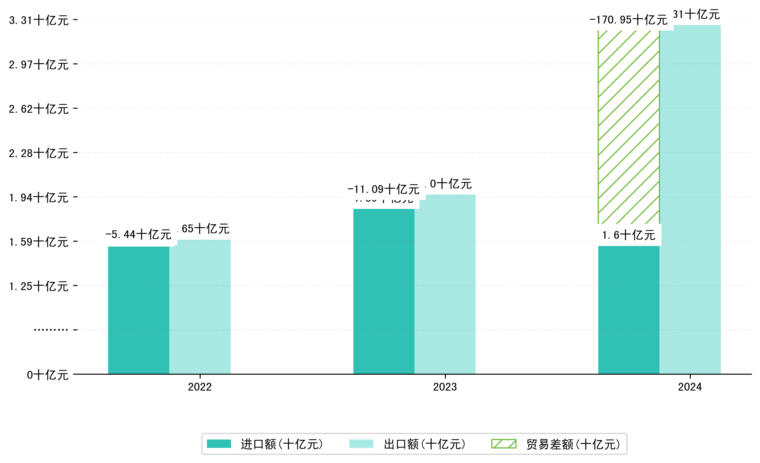 以人民币计,2024年1-12月西宁市贸易差额为17,0949,1089万元(贸易顺差),相比上年同期增加了15,9856,0276万元,同比增加1441.04%。