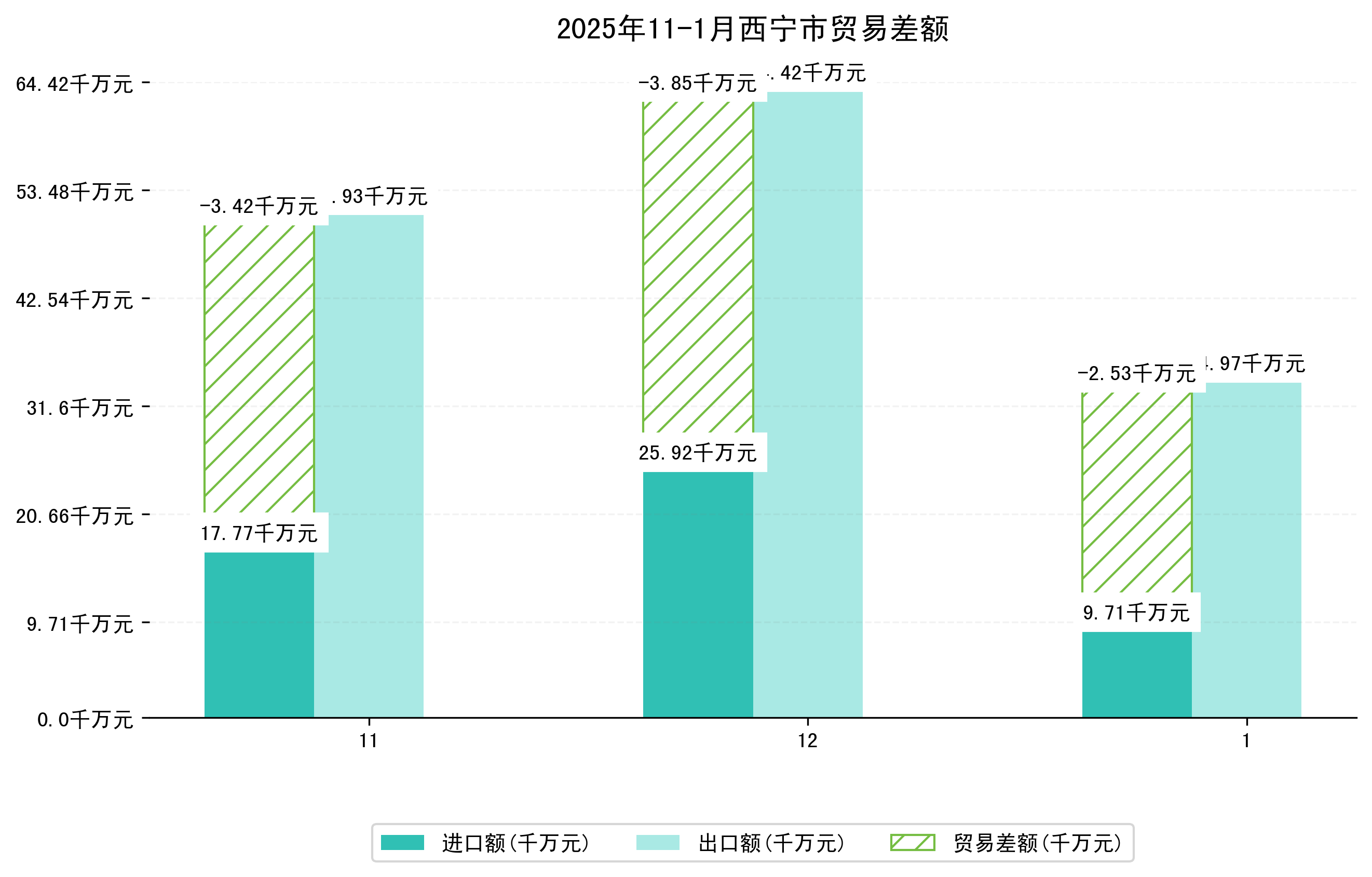 2025年1月西宁市进出口总额及进出口差额统计分析