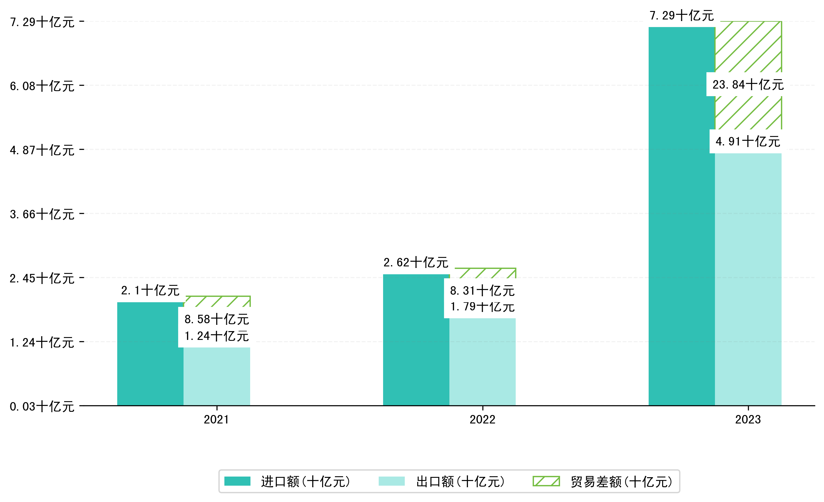 以人民币计,2023年2月新余市贸易差额为8,5768,6440万元(贸易逆差),相比上月增加了6,6865,4442万元,即9418,0331万美元;相比上年同期减少了2,7736,1166万元,同比减少47.79%。