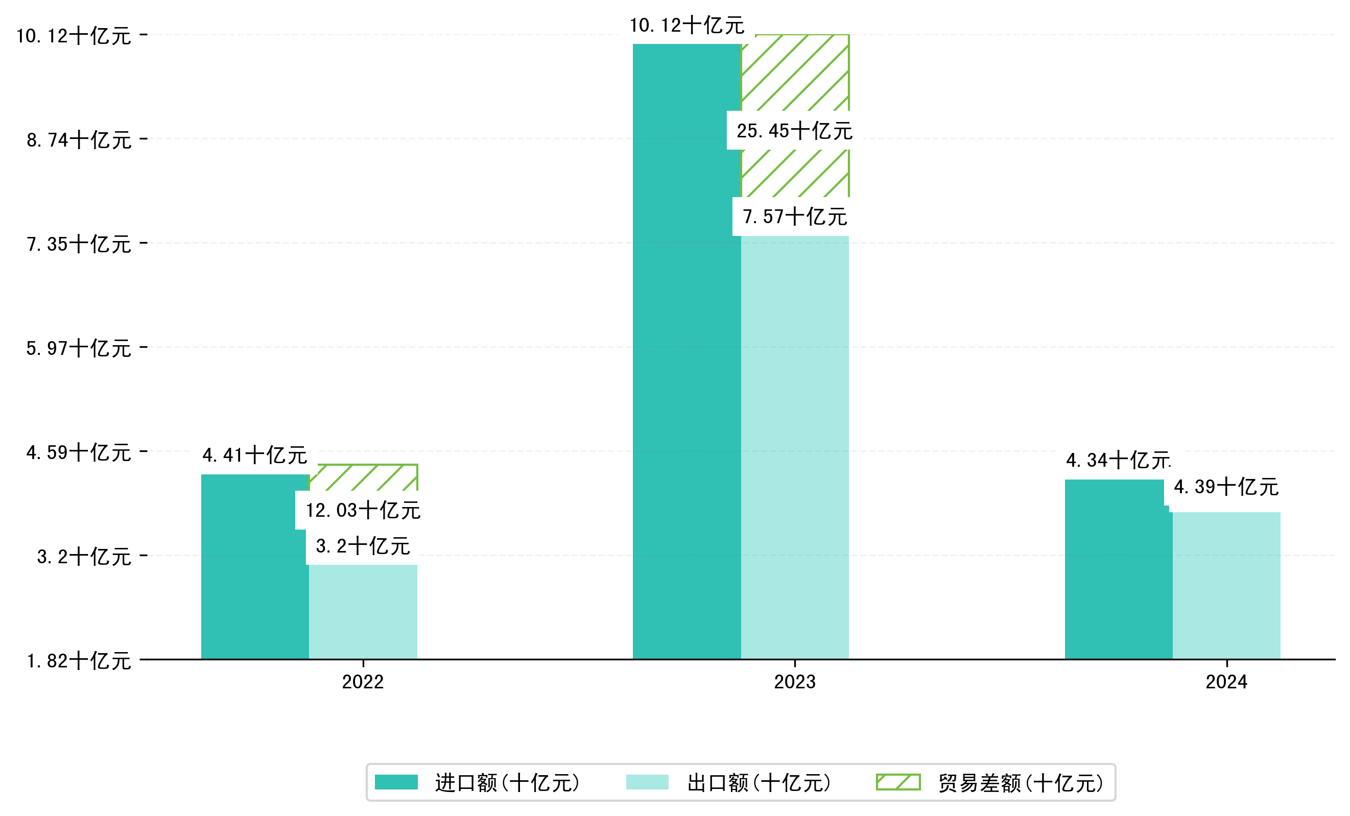 以美元计,2024年3月新余市贸易差额为2470,7309万美元(贸易顺差),相比上月增加了4585,5633万美元;相比上年同期增加了5115,0940万美元,同比增加-193.43%。