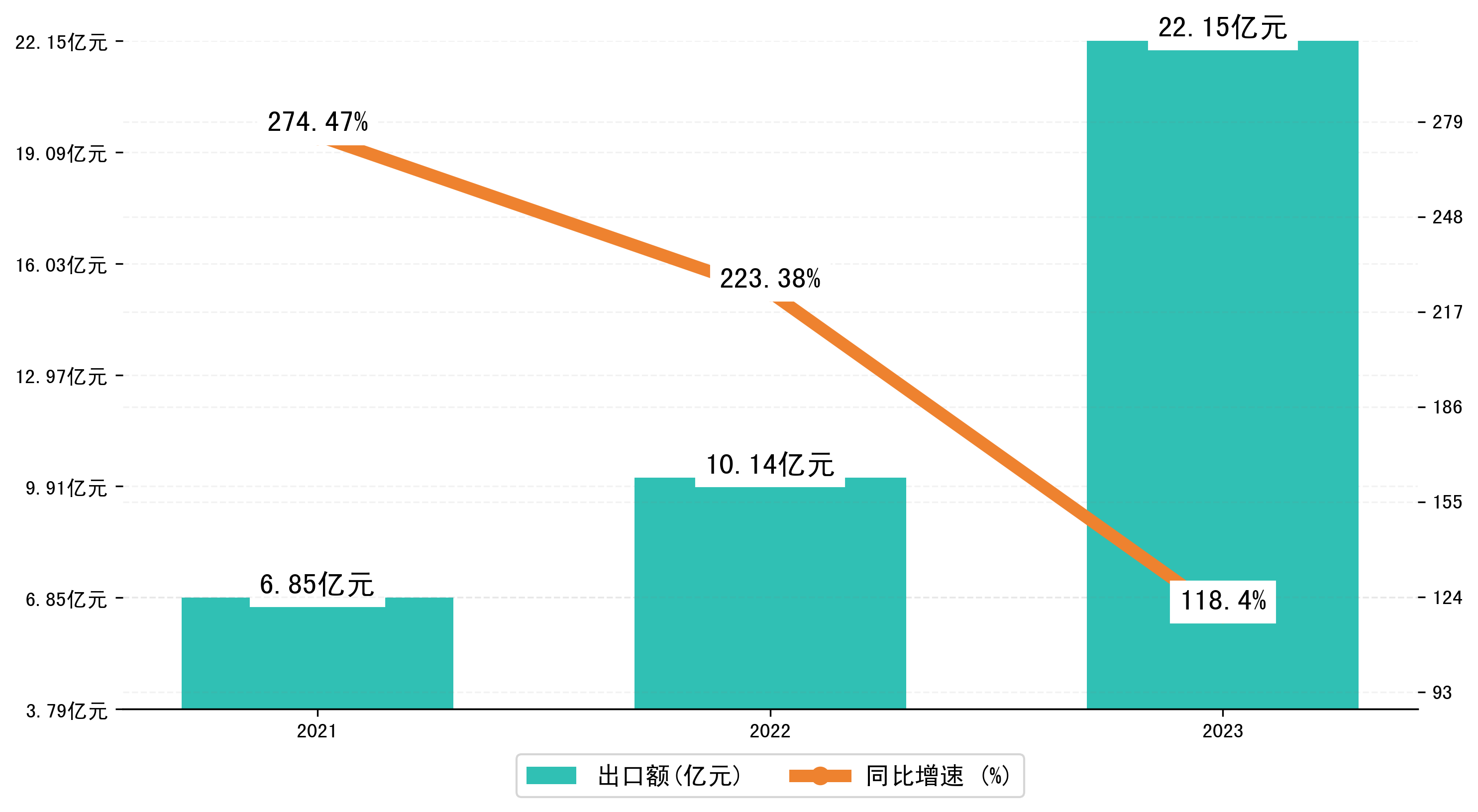以人民币计,2023年1月新余市出口额为22,1452.433万元,相比上月增加了4,2254.4071万元;相比上年同期增加了12,0056.7191万元,同比增加了118.40%。