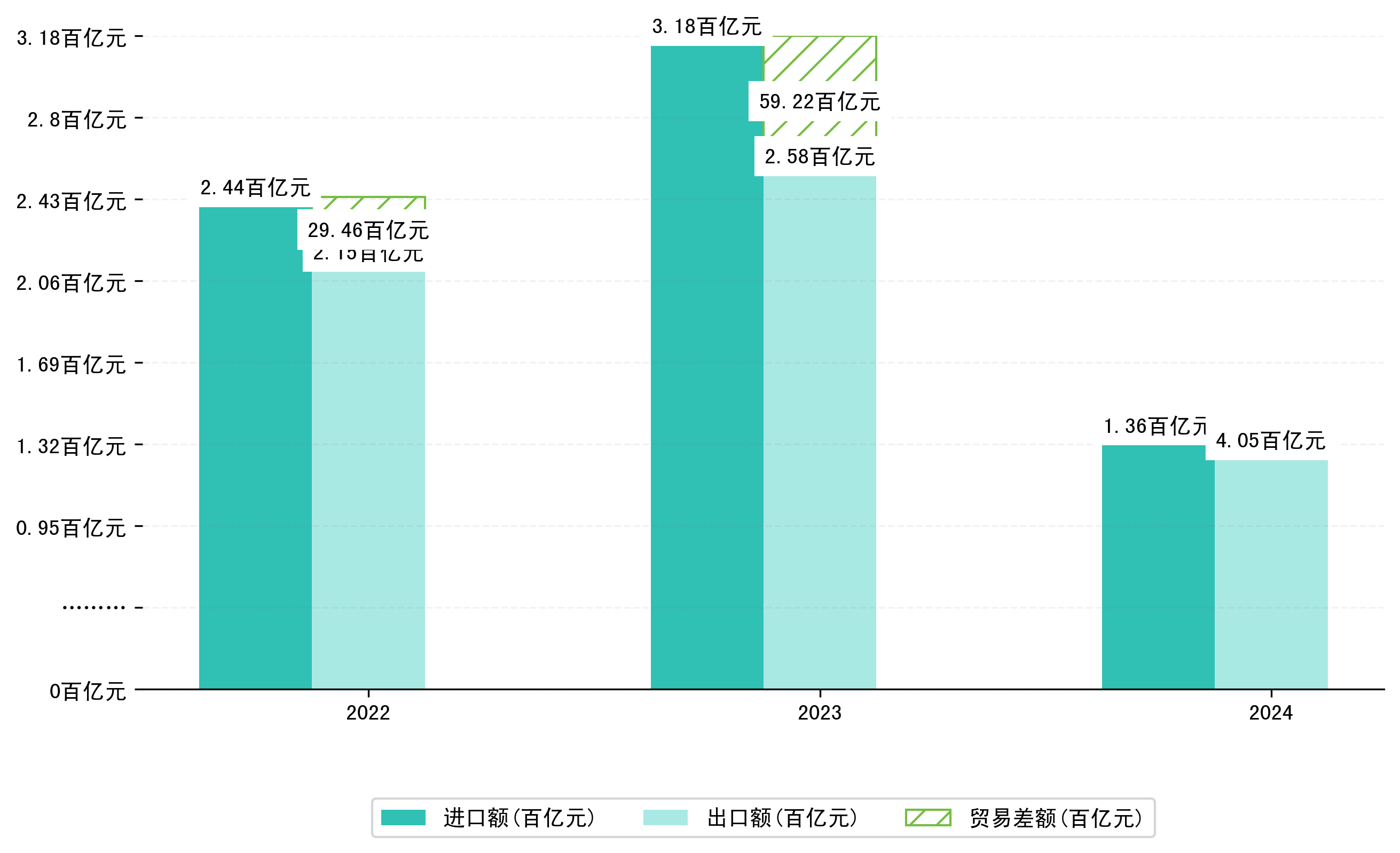 以人民币计,2024年1-12月新余市贸易差额为4,0492,7985万元(贸易逆差),相比上年同期增加了55,1730,7015万元,同比增加-93.16%。
