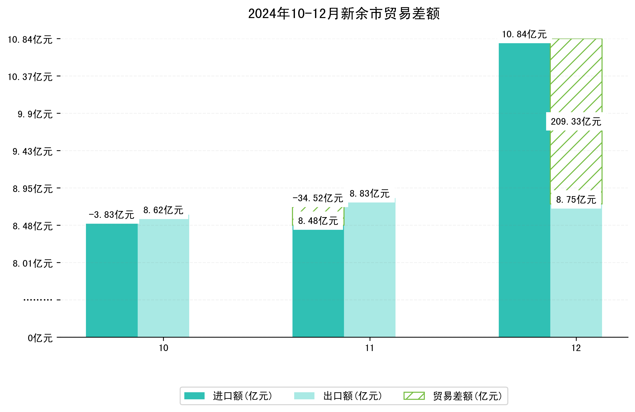 一、2024年12月新余市单月出口总额及进出口差额统计分析