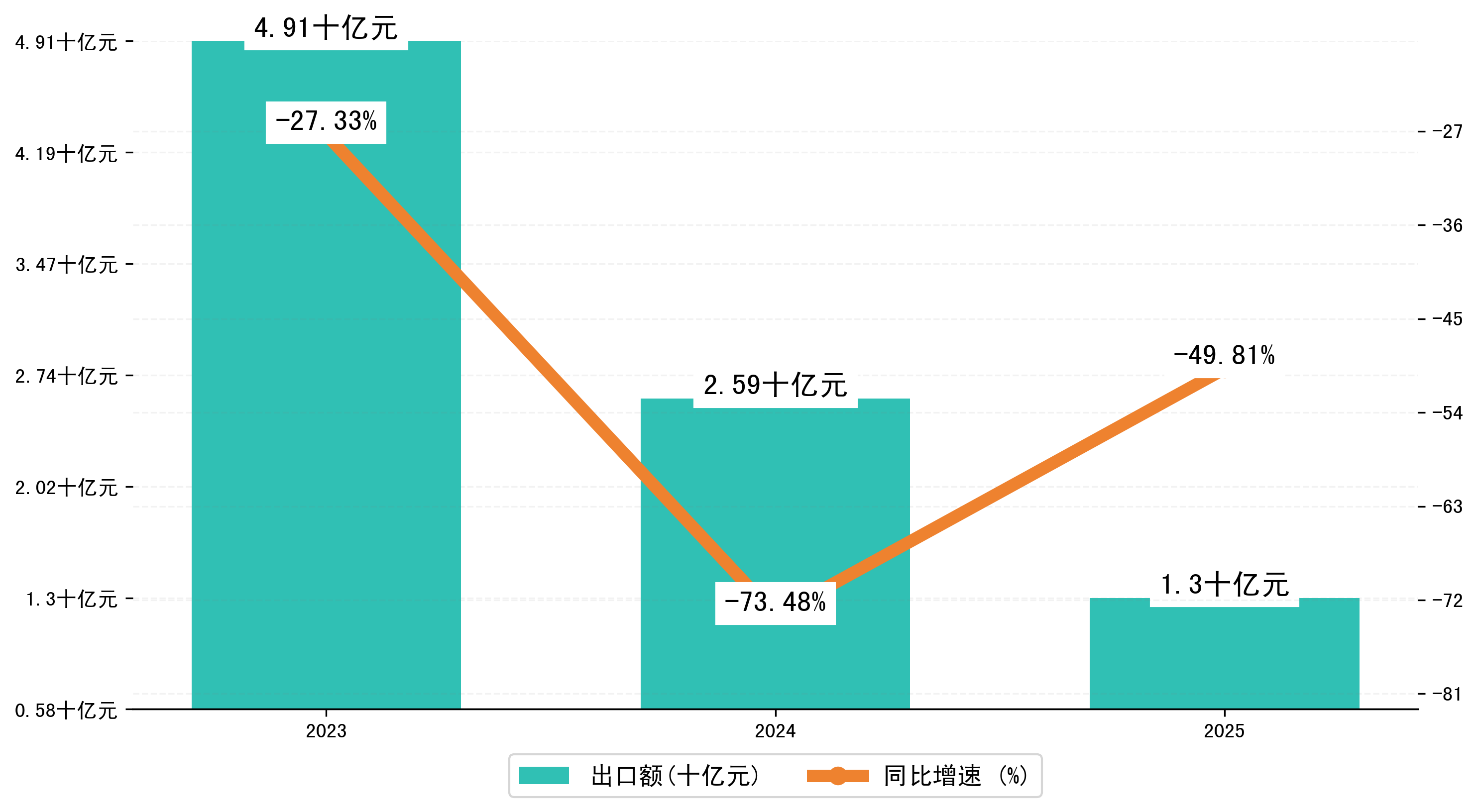 以人民币计,2025年1-2月新余市出口额为13,0173.3113万元,相比上年同期减少了12,9191.5297万元,同比减少了-49.80%。