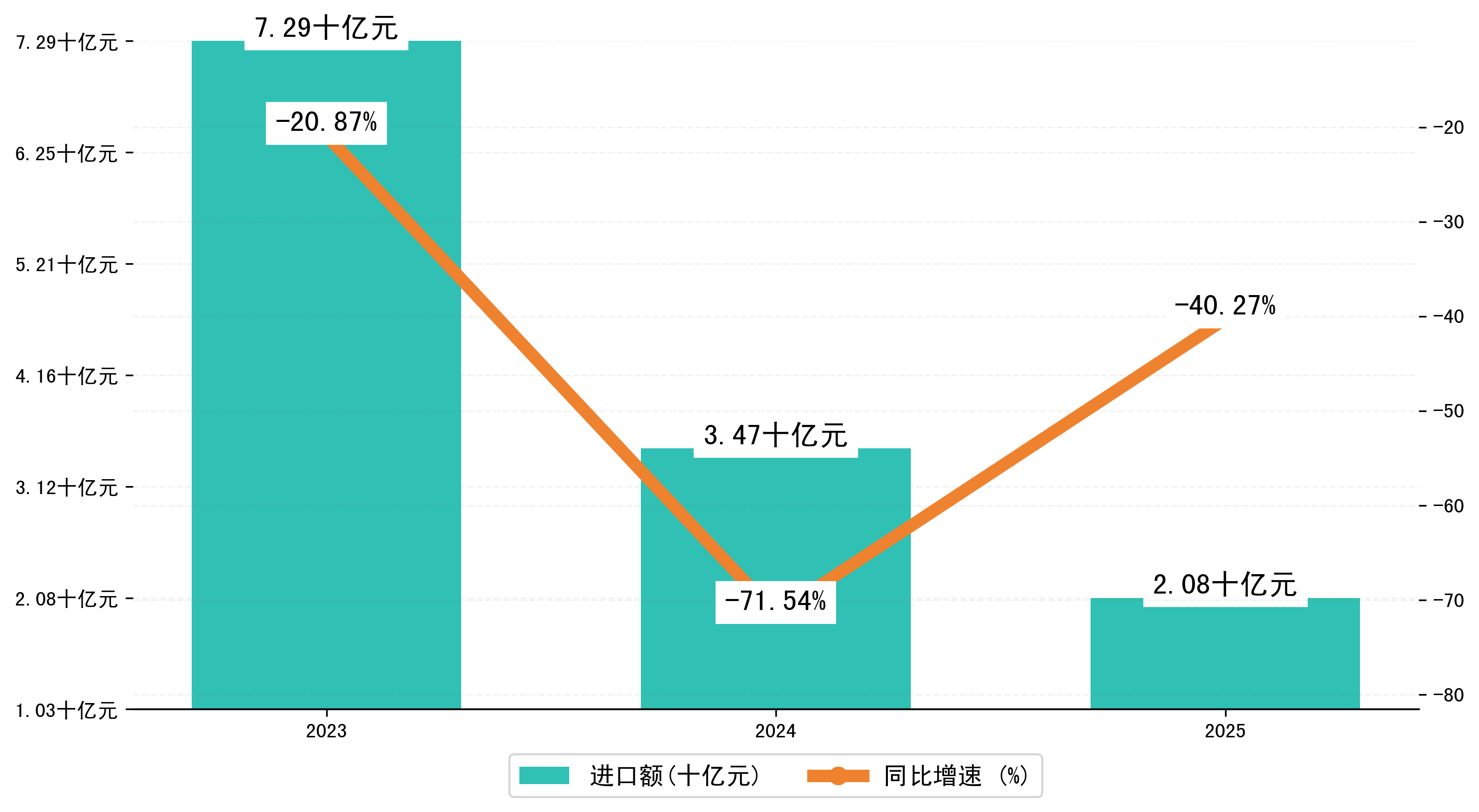 以人民币计,2025年1-2月新余市进口额为20,7545.1085万元,相比上年同期减少了13,9901.6987万元,同比减少了-31.60%。