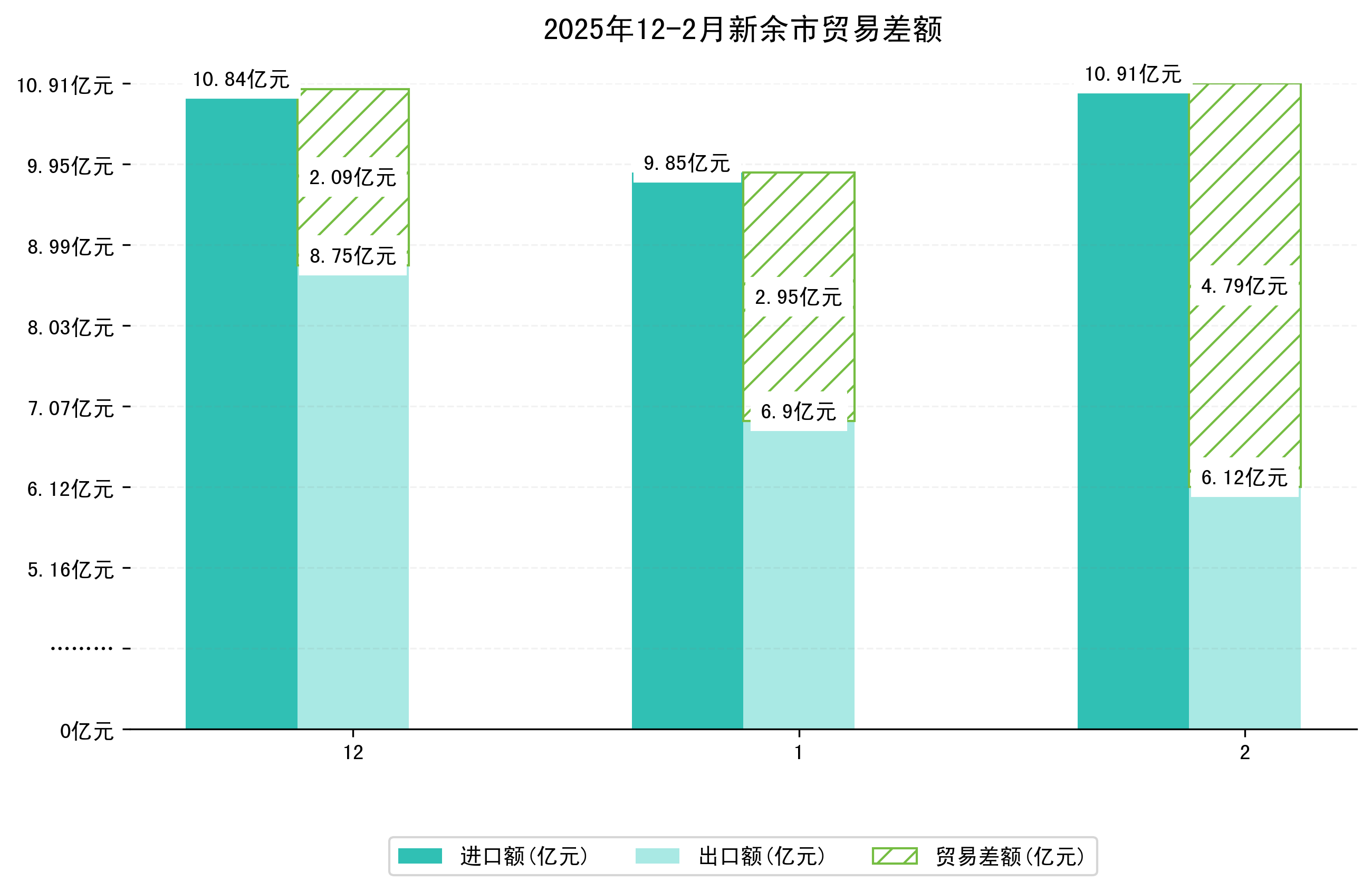 一、2025年2月新余市单月出口总额及进出口差额统计分析