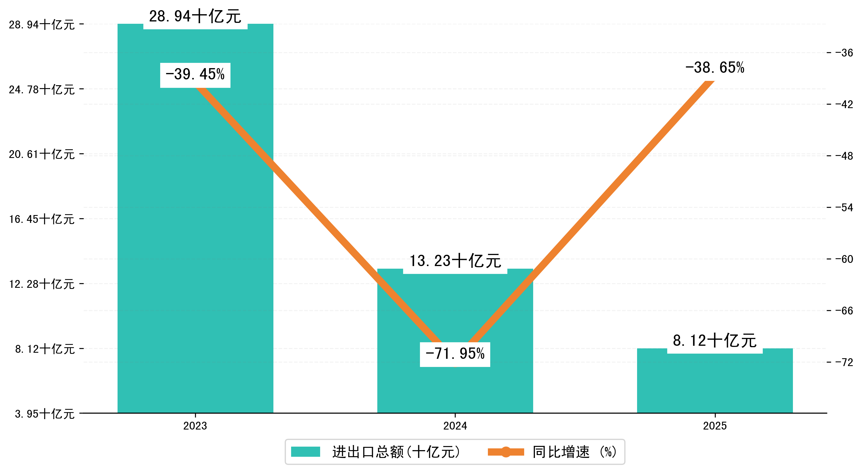以人民币计,2025年1-5月新余市进出口总额为81,1896.9259万元,相比上年同期减少了51,1562.5975万元,同比减少了-37.60%。